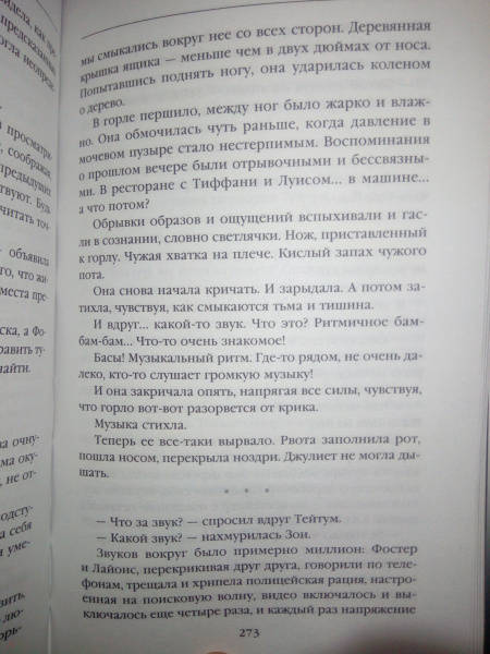 ОписаниеНиколь приходит в себя – и понимает, что находится в полной темноте, в небольшом замкнутом пространстве. Ее локти и колени упираются в шершавые доски. Почти нечем дышать. Все звуки раздаются глухо, словно под землей… Под землей?!ОНА ПОХОРОНЕНА ЗАЖИВО.Николь начинает кричать и биться в своем гробу. От ужаса перехватывает горло, она ничего не соображает, кроме одного – что выхода отсюда у нее нет. И не замечает, что к доскам над ней прикреплена маленькая инфракрасная видеокамера…ИДЕТ ПРЯМАЯ ИНТЕРНЕТ-ТРАНСЛЯЦИЯ.В это же время "гробовое" видео смотрят профайлер ФБР Зои Бентли и специальный агент Тейтум Грей. Рядом с изображением подпись – "Эксперимент №1". Они понимают: объявился новый серийный маньяк-убийца –И ОБЯЗАТЕЛЬНО БУДЕТ ЭКСПЕРИМЕНТ №2…Николь приходит в себя – и понимает, что находится в полной темноте, в небольшом замкнутом пространстве. Ее локти и колени упираются в шершавые доски. Почти нечем дышать. Все звуки раздаются глухо, словно под землей… Под землей?!ОНА ПОХОРОНЕНА ЗАЖИВО.Николь начинает кричать и биться в своем гробу. От ужаса перехватывает горло, она ничего не соображает, кроме одного – что выхода отсюда у нее нет. И не замечает, что к доскам над ней прикреплена маленькая инфракрасная видеокамера…ИДЕТ ПРЯМАЯ ИНТЕРНЕТ-ТРАНСЛЯЦИЯ.В это же время "гробовое" видео смотрят профайлер ФБР Зои Бентли и специальный агент Тейтум Грей. Рядом с изображением подпись – "Эксперимент №1". Они понимают: объявился новый серийный маньяк-убийца –И ОБЯЗАТЕЛЬНО БУДЕТ ЭКСПЕРИМЕНТ №2…