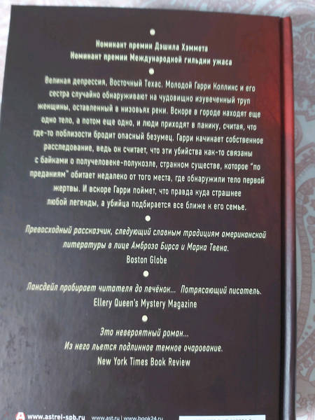 Объем, стр. 446 ISBN 978-5-17-119801-5 Автор Лансдейл Джо Р., Романин Евгений Владимирович Переводчик Романин Евгений Владимирович Серия Звезды детектива Минимальный возраст 18+ Год издания книги 2021 Тип обложки Твердый переплет Иллюстрации Без иллюстраций Вес, г 440г Размеры 208х135х39 мм - Отзывы
