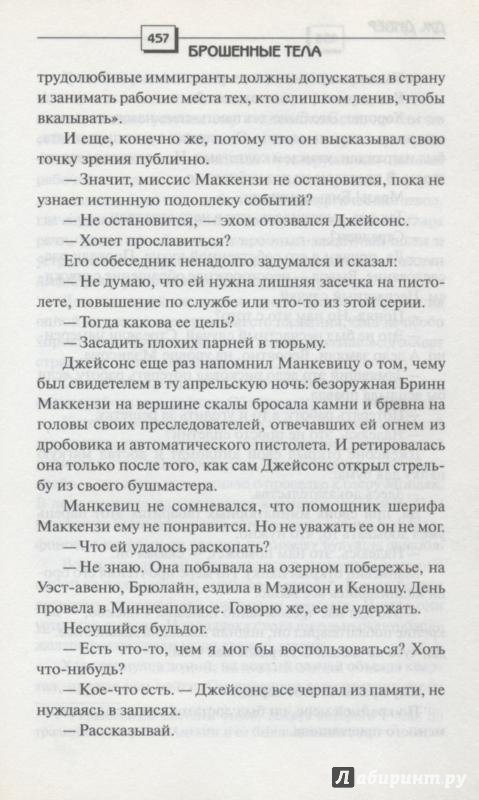 ОписаниеЗаказ поступил - и был выполнен.Знаменитый адвокат Эмма Фельдман и ее муж жестоко убиты в собственном загородном доме.Следующая цель убийцы - видевшая его лицо гостья Фельдманов Мишель, чудом уцелевшая во время бойни.Мишель находится под защитой помощницы шерифа Бринн Макензи, опытной сотрудницы полиции, - однако многоопытный киллер решает рискнуть. Более того, он словно наслаждается смертельно опасной игрой с Бринн, в которой побежденного ожидает смерть.Кто жертва - и кто охотник?Кто преследователь - и кто добыча?Ведь и Бринн, и преступнику хорошо известно: отступать им некуда. Остается либо погибнуть, либо вступить в смертельно опасную игру.Заказ поступил - и был выполнен.Знаменитый адвокат Эмма Фельдман и ее муж жестоко убиты в собственном загородном доме.Следующая цель убийцы - видевшая его лицо гостья Фельдманов Мишель, чудом уцелевшая во время бойни.Мишель находится под защитой помощницы шерифа Бринн Макензи, опытной сотрудницы полиции, - однако многоопытный киллер решает рискнуть. Более того, он словно наслаждается смертельно опасной игрой с Бринн, в которой побежденного ожидает смерть.Кто жертва - и кто охотник?Кто преследователь - и кто добыча?Ведь и Бринн, и преступнику хорошо известно: отступать им некуда. Остается либо погибнуть, либо вступить в смертельно опасную игру.