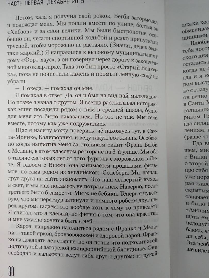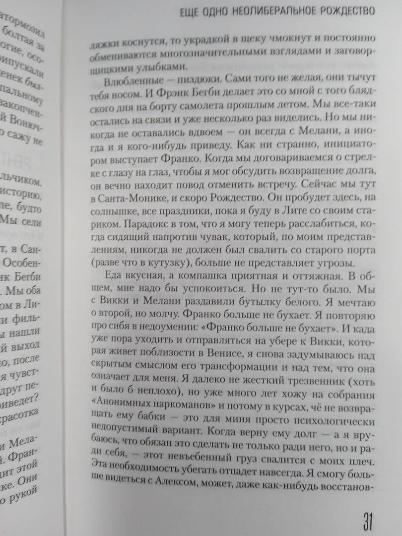 ОписаниеВпервые на русском - новейший роман "неоспоримого лидера в новой волне современной британской словесности" (Observer), который "неизменно доказывает, что литература - лучший наркотик" (Spin). Возвращаясь из Шотландии в Калифорнию, Бегби - самый одержимый из давно знакомых нам эдинбургских парней, переквалифицировавшийся в успешного скульптора и загнавший былую агрессию, казалось бы, глубоко внутрь, - встречает в самолете Рентона. И тот, двадцать лет страшившийся подобной встречи, донельзя удивлен: Бегби не лезет драться и вообще как будто не помышляет о мести. Рентон за прошедшие годы тоже заматерел, стал известным менеджером на клубно-диджейской сцене, живет то в Голландии, то в Штатах. Больной перебрался в Лондон, руководит эскорт-агентством нового типа. А вечному неудачнику Спаду Мёрфи посулили легкий приработок - и он ввязывается в контрабанду человеческих органов. Издевательский каприз судьбы сведет старых друзей вместе - и переживут эту встречу не все. Кому же придутся впору Джинсы Мертвых Торчков? "Свершилось! Рентон, Бегби, Больной и Спад снова вместе", - пишет газета Sunday Times. И, если верить автору, это их последнее приключение.СвернутьВпервые на русском - новейший роман "неоспоримого лидера в новой волне современной британской словесности" (Observer), который "неизменно доказывает, что литература - лучший наркотик" (Spin). Возвращаясь из Шотландии в Калифорнию, Бегби - самый одержимый из давно знакомых нам эдинбургских парней, переквалифицировавшийся в успешного скульптора и загнавший былую агрессию, казалось бы, глубоко внутрь, - встречает в самолете Рентона. И тот, двадцать лет страшившийся подобной встречи, донельзя удивлен: Бегби не лезет драться и вообще как будто не помышляет о мести. Рентон за прошедшие годы тоже заматерел, стал известным менеджером на клубно-диджейской сцене, живет то в Голландии, то в Штатах. Больной перебрался в Лондон, руководит эскорт-агентством нового типа. А вечному неудачнику Спаду Мёрфи посулили легкий приработок - и он ввязывается в контрабанду человеческих органов. Издевательский каприз судьбы сведет старых друзей вместе - и переживут эту встречу не все. Кому же придутся впору Джинсы Мертвых Торчков? "Свершилось! Рентон, Бегби, Больной и Спад снова вместе", - пишет газета Sunday Times. И, если верить автору, это их последнее приключение.СвернутьСвернуть