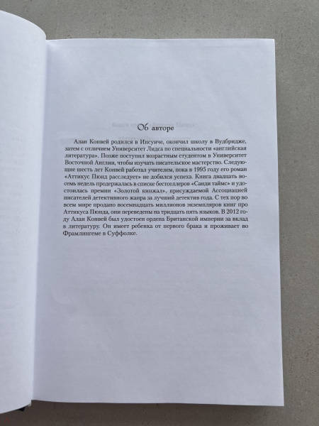 ОписаниеРедактор Сьюзен Райленд читает рукопись детективного романа, который с нетерпением ожидают поклонники популярной серии, и обнаруживает, что там недостает самого интересного — развязки. Сьюзен начинает поиски пропавших страниц и попутно фантазирует, пытаясь отгадать, кто же является убийцей в романе, составляет список подозреваемых… Известие о смерти Алана Конвея, автора того самого детектива, застает ее врасплох. Он покончил с собой? Стал жертвой несчастного случая? Но Сьюзен не зря двадцать лет редактировала книги криминального жанра, дедуктивный метод знаком ей не понаслышке. Сопоставив некоторые факты, она приходит к выводу, что произошло замаскированное убийство, и с риском для жизни начинает распутывать этот детективный клубок...