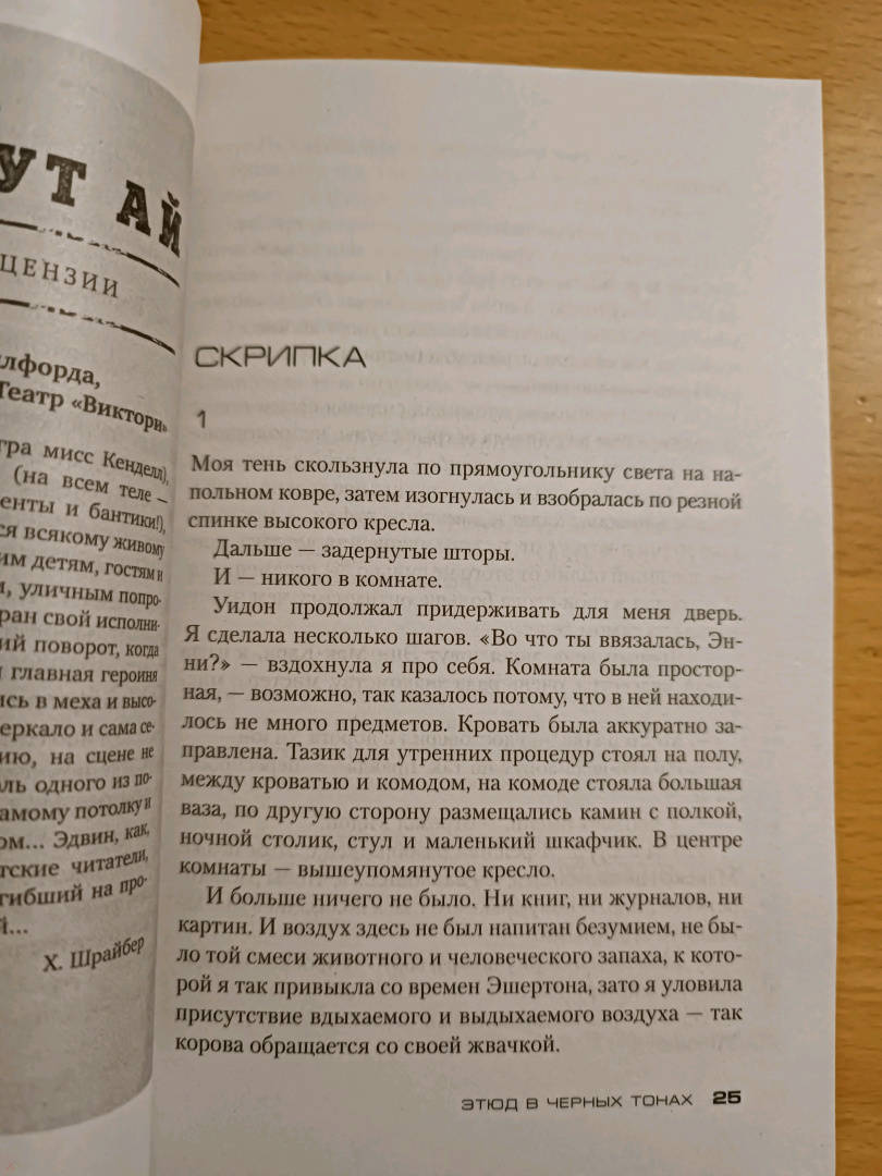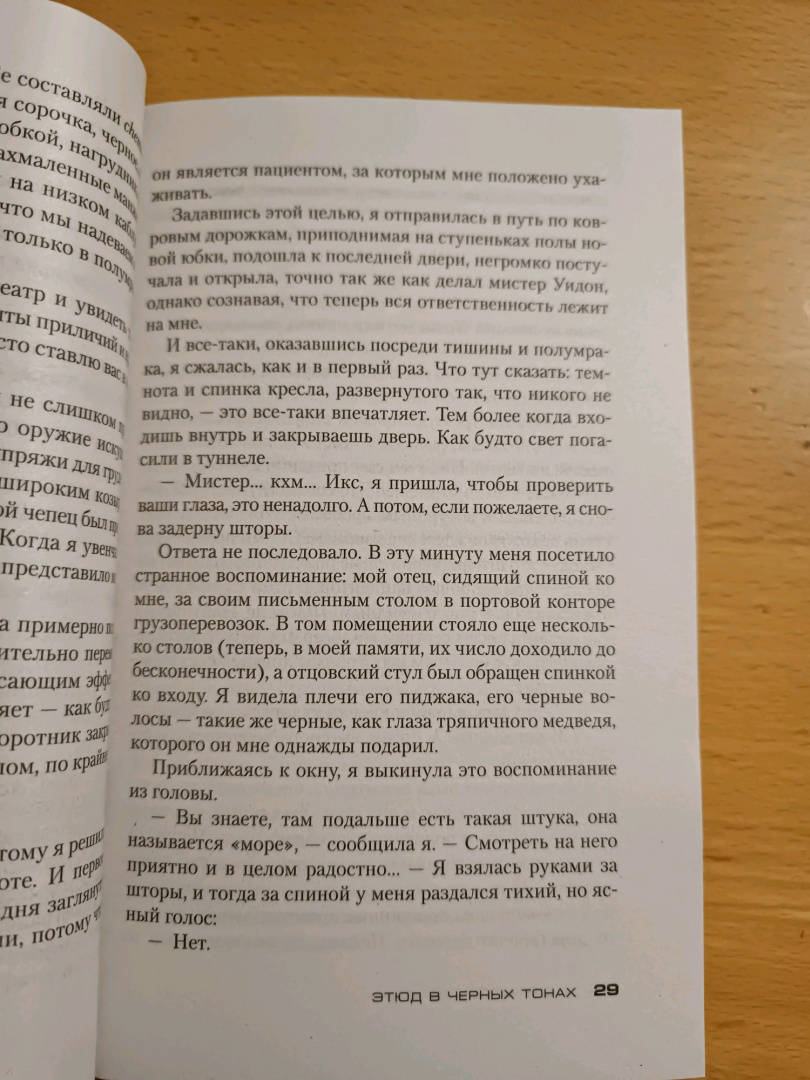 ОписаниеХосе Карлос Сомоза - один из самых популярных испанских писателей, лауреат премии "Золотой кинжал" и множества других литературных премий. В романе Сомозы "Этюд в черных тонах" все начинается в июне 1882 года, когда медсестра, Энн Мак-Кари, немолодая, некрасивая, незамужняя, прибывает в Портсмут, где она получила место в престижной клинике для душевнобольных Кларендон-Хаус. Ей поручают заботиться о загадочном джентльмене. Этот странный пациент велит называть себя мистер Икс, он не переносит дневного света, зато наделен необычайной проницательностью, для него нет ничего тайного в поступках людей, а расследовать преступления он может, не вставая с кресла. К этому дуэту присоединяется лондонский доктор Конан Дойл, только открывший практику. Тем временем в окрестностях клиники при загадочных обстоятельствах со странной периодичностью происходят несколько убийств. Полиция заходит в тупик, и кажется, единственный, кто способен раскрыть дело, - это мистер Икс.Хосе Карлос Сомоза - один из самых популярных испанских писателей, лауреат премии "Золотой кинжал" и множества других литературных премий. В романе Сомозы "Этюд в черных тонах" все начинается в июне 1882 года, когда медсестра, Энн Мак-Кари, немолодая, некрасивая, незамужняя, прибывает в Портсмут, где она получила место в престижной клинике для душевнобольных Кларендон-Хаус. Ей поручают заботиться о загадочном джентльмене. Этот странный пациент велит называть себя мистер Икс, он не переносит дневного света, зато наделен необычайной проницательностью, для него нет ничего тайного в поступках людей, а расследовать преступления он может, не вставая с кресла. К этому дуэту присоединяется лондонский доктор Конан Дойл, только открывший практику. Тем временем в окрестностях клиники при загадочных обстоятельствах со странной периодичностью происходят несколько убийств. Полиция заходит в тупик, и кажется, единственный, кто способен раскрыть дело, - это мистер Икс.