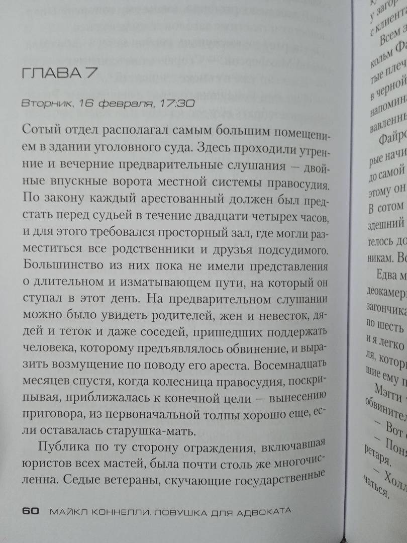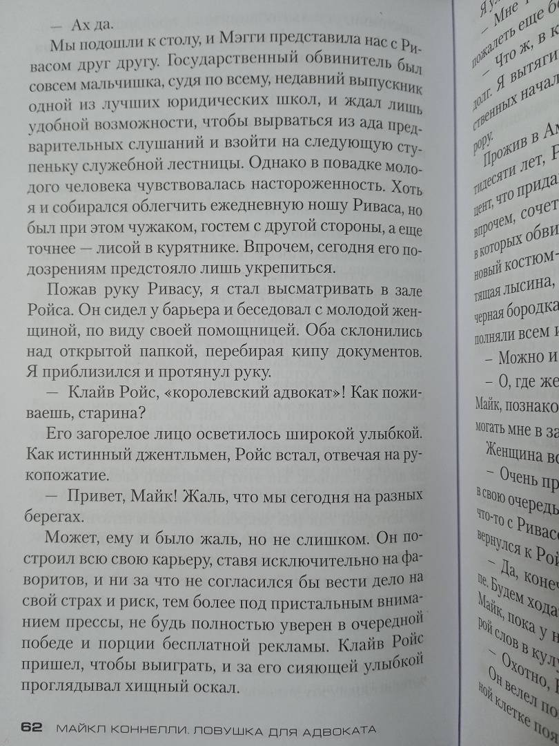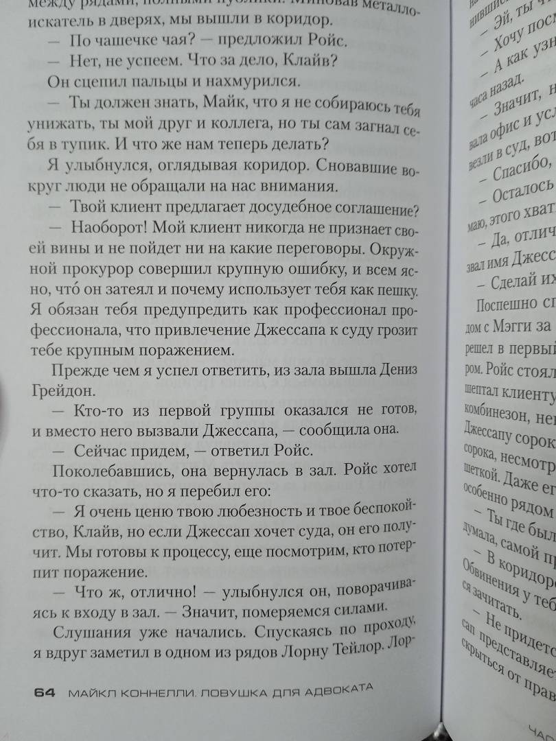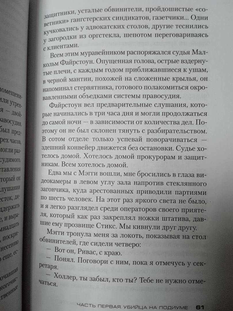 ОписаниеДля того чтобы успешный адвокат по уголовным делам Микки Холлер решил выступить в суде по другую сторону баррикады - а именно в роли независимого обвинителя, - нужно веское основание. И да, оно имеется, потому что "существуют виды зла, которые следует искоренять любой ценой". Вскоре выйдет на свободу человек, почти четверть века назад осужденный за похищение девочки. Она была убита, однако генетическая экспертиза не установила его причастность к смерти ребенка. Заключенный подал гражданский иск, требуя многомиллионной компенсации. Поднята большая шумиха. Но Холлеру известна некая конфиденциальная информация. Он почти уверен, что... Дело рассматривается повторно, однако каждый опытный юрист знает, что присяжные под влиянием, а порой под откровенным давлением защиты и обвинения не всегда объективны. Холлеру нужны те, кто будет играть на его стороне, и он заручается их поддержкой, - это бывшая жена, помощник окружного прокурора, по прозвищу Свирепая Мэгги, и сводный брат, детектив Гарри Босх, который будет дознавателем. Вообще-то, на него одна надежда. Лишь благодаря ему можно будет установить, кем же является обвиняемый: жертвой правосудия или жестоким убийцей.СвернутьДля того чтобы успешный адвокат по уголовным делам Микки Холлер решил выступить в суде по другую сторону баррикады - а именно в роли независимого обвинителя, - нужно веское основание. И да, оно имеется, потому что "существуют виды зла, которые следует искоренять любой ценой". Вскоре выйдет на свободу человек, почти четверть века назад осужденный за похищение девочки. Она была убита, однако генетическая экспертиза не установила его причастность к смерти ребенка. Заключенный подал гражданский иск, требуя многомиллионной компенсации. Поднята большая шумиха. Но Холлеру известна некая конфиденциальная информация. Он почти уверен, что... Дело рассматривается повторно, однако каждый опытный юрист знает, что присяжные под влиянием, а порой под откровенным давлением защиты и обвинения не всегда объективны. Холлеру нужны те, кто будет играть на его стороне, и он заручается их поддержкой, - это бывшая жена, помощник окружного прокурора, по прозвищу Свирепая Мэгги, и сводный брат, детектив Гарри Босх, который будет дознавателем. Вообще-то, на него одна надежда. Лишь благодаря ему можно будет установить, кем же является обвиняемый: жертвой правосудия или жестоким убийцей.СвернутьСвернуть