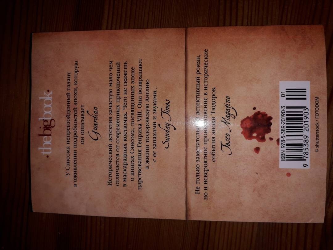 Объем, стр. 800 ISBN 978-5-389-20190-3 Автор Сэнсом К. Дж., Большелапова Екатерина Переводчик Большелапова Екатерина Серия The Big Book (мяг) Язык Русский Минимальный возраст 18+ Год издания книги 2021 Тип обложки Мягкий переплет Иллюстрации Без иллюстраций Вес, г 378г Размеры 179х115х31 мм - Отзывы