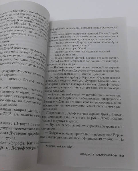 ОписаниеВ прекрасном по-европейски спокойном городе Брюгге произошло более чем странное происшествие: двое неизвестных проникли в роскошный магазин "Дегроф. Бриллианты и ювелирные изделия", но, ничего не похитив, собрали драгоценности стоимостью двадцать пять миллионов евро и опустили в соляную кислоту. В записке, адресованной владельцу магазина, было написано пять таинственных слов на латыни. Комиссар полиции Ван-Ин, профессионал и детектив от Бога, убежден: непонятный поступок злоумышленников - лишь предупреждение, готовятся новые преступления, и направлены они против Дегрофа. А причину надо искать в прошлом этого человека…В прекрасном по-европейски спокойном городе Брюгге произошло более чем странное происшествие: двое неизвестных проникли в роскошный магазин "Дегроф. Бриллианты и ювелирные изделия", но, ничего не похитив, собрали драгоценности стоимостью двадцать пять миллионов евро и опустили в соляную кислоту. В записке, адресованной владельцу магазина, было написано пять таинственных слов на латыни. Комиссар полиции Ван-Ин, профессионал и детектив от Бога, убежден: непонятный поступок злоумышленников - лишь предупреждение, готовятся новые преступления, и направлены они против Дегрофа. А причину надо искать в прошлом этого человека…