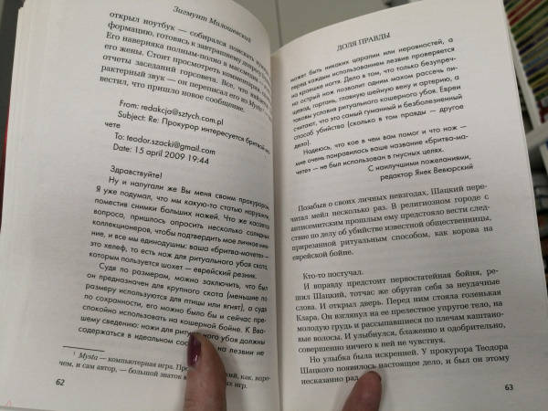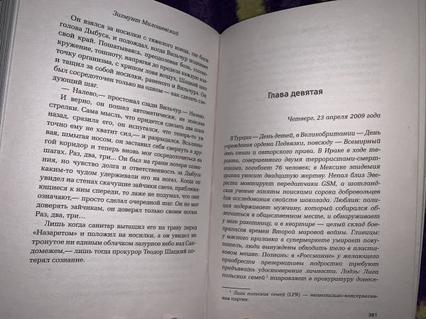ОписаниеСтарый город Сандомеж потрясает убийство: неподалеку от местного монастыря находят полностью обескровленный труп женщины, зарезанной ножом для кошерного убоя скота. Дело поручают прокурору Теодору Шацкому, который был вынужден переехать в провинцию из Варшавы. Вскоре он понимает, что просто так раскрытьпреступление не удастся. Оно связано со старыми легендами, опутывающими этот город, и с недавними трагедиями XX века. Оно пробуждает прошлое, оживляет древние суеверия, ненависть и распри. Вскоре прокурору придется не только вести расследование, но и успокаивать паникующих озлобленных горожан. А убийца не останавливается, и его методы становятся все более средневековыми.Старый город Сандомеж потрясает убийство: неподалеку от местного монастыря находят полностью обескровленный труп женщины, зарезанной ножом для кошерного убоя скота. Дело поручают прокурору Теодору Шацкому, который был вынужден переехать в провинцию из Варшавы. Вскоре он понимает, что просто так раскрытьпреступление не удастся. Оно связано со старыми легендами, опутывающими этот город, и с недавними трагедиями XX века. Оно пробуждает прошлое, оживляет древние суеверия, ненависть и распри. Вскоре прокурору придется не только вести расследование, но и успокаивать паникующих озлобленных горожан. А убийца не останавливается, и его методы становятся все более средневековыми.