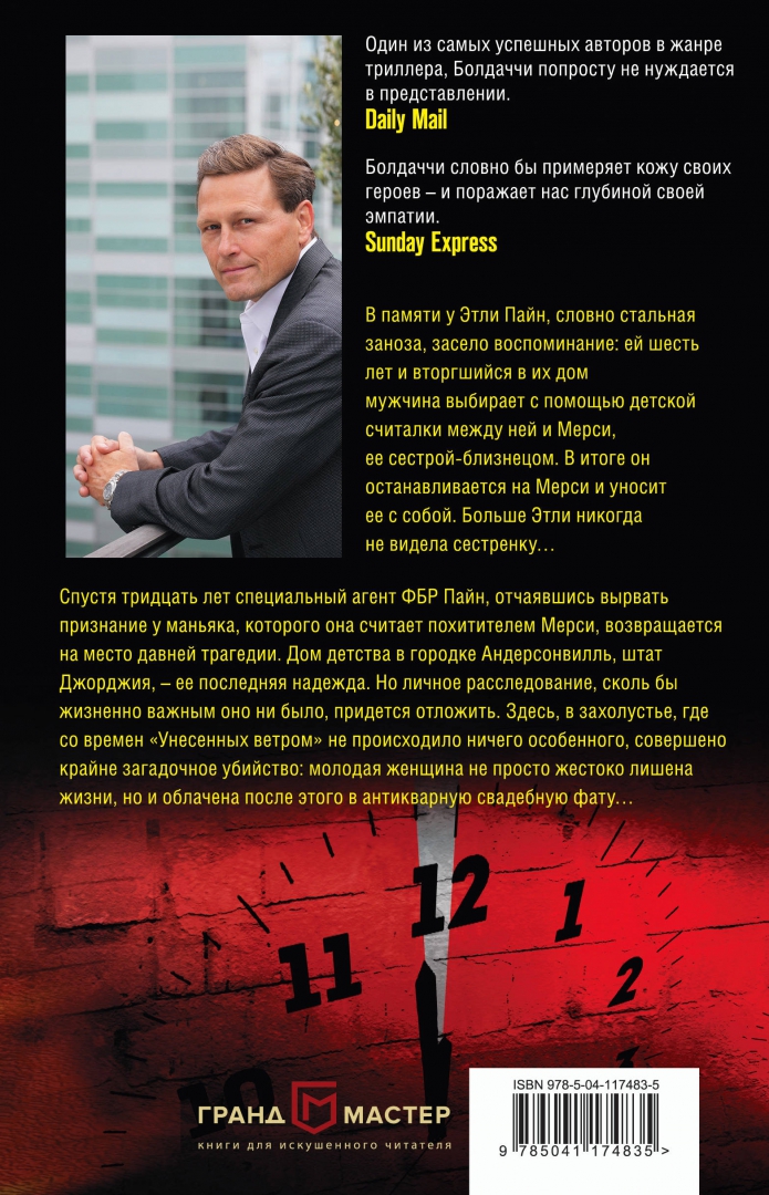 ОписаниеВ памяти у Этли Пайн, словно стальная заноза, засело воспоминание: ей шесть лет, и вторгшийся в их дом мужчина выбирает с помощью детской считалки между ней и Мерси, ее сестрой-близнецом. В итоге он останавливается на Мерси и уносит ее с собой. Больше Этли никогда не видела сестренку…Спустя тридцать лет специальный агент ФБР Пайн, отчаявшись вырвать признание у маньяка, которого она считает похитителем Мерси, возвращается на место давней трагедии. Дом детства в городке Андерсонвилль, штат Джорджия – ее последняя надежда. Но личное расследование, сколь бы жизненно важным оно ни было, придется отложить. Здесь, в захолустье, где со времен "Унесенных ветром" не происходило ничего особенного, совершено крайне загадочное убийство: молодая женщина не просто жестоко лишена жизни, но и облачена после этого в антикварную свадебную фату…В памяти у Этли Пайн, словно стальная заноза, засело воспоминание: ей шесть лет, и вторгшийся в их дом мужчина выбирает с помощью детской считалки между ней и Мерси, ее сестрой-близнецом. В итоге он останавливается на Мерси и уносит ее с собой. Больше Этли никогда не видела сестренку…Спустя тридцать лет специальный агент ФБР Пайн, отчаявшись вырвать признание у маньяка, которого она считает похитителем Мерси, возвращается на место давней трагедии. Дом детства в городке Андерсонвилль, штат Джорджия – ее последняя надежда. Но личное расследование, сколь бы жизненно важным оно ни было, придется отложить. Здесь, в захолустье, где со времен "Унесенных ветром" не происходило ничего особенного, совершено крайне загадочное убийство: молодая женщина не просто жестоко лишена жизни, но и облачена после этого в антикварную свадебную фату…