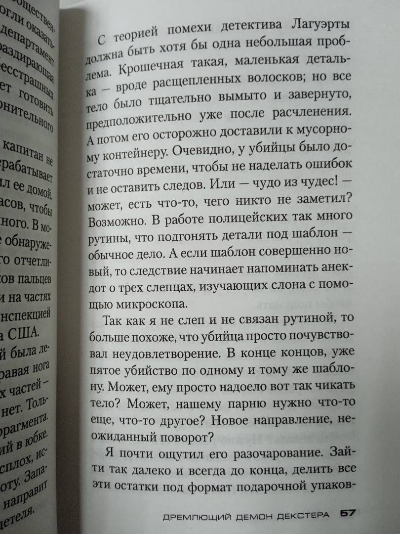 ОписаниеДекстер Морган – волк в овечьей шкуре. Он красив, обаятелен и очень прагматичен. При всем при том он серийный убийца, впрочем, придерживающийся золотого правила убивать только плохих людей. Декстер действует чрезвычайно осторожно и осмотрительно, и в этом ему помогает работа криминалистом в полиции Майами. Но, когда начинается серия жестоких убийств, совершенных в его собственном стиле, Декстер чувствует себя польщенным и одновременно напуганным, поскольку понимает, что это послание лично ему. Должен ли он помочь своей сестре-полицейскому Деборе раскрыть дело, чтобы она могла получить повышение? Должен ли он сам найти убийцу, работой которого втайне восхищается? А что, если он и есть тот самый неуловимый убийца?