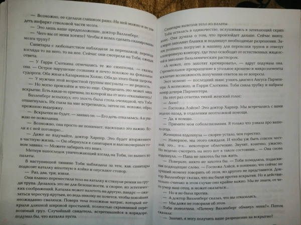 ОписаниеСтранная клиническая картина обнаруживается у двоих пациентов отделения неотложной помощи. Еще более странными кажутся обстоятельства бесследного исчезновения одного и смерти другого. Все это происходит во время дежурств доктора Тоби Харпер, и она выясняет, что еще совсем недавно оба были здоровы и ни на что не жаловались. Что же случилось с этими людьми? По какой причине лечащий врач умершего больного отказался проводить вскрытие? Попытка найти ответы на эти вопросы приводит Тоби в поселок Брэнт-Хилл, где живут богатые пожилые люди, считающие, что за деньги можно купить все, даже вечную молодость. Постепенно перед доктором Харпер вырисовывается схема преступления, в котором замешаны те, кто давал клятву Гиппократа...Странная клиническая картина обнаруживается у двоих пациентов отделения неотложной помощи. Еще более странными кажутся обстоятельства бесследного исчезновения одного и смерти другого. Все это происходит во время дежурств доктора Тоби Харпер, и она выясняет, что еще совсем недавно оба были здоровы и ни на что не жаловались. Что же случилось с этими людьми? По какой причине лечащий врач умершего больного отказался проводить вскрытие? Попытка найти ответы на эти вопросы приводит Тоби в поселок Брэнт-Хилл, где живут богатые пожилые люди, считающие, что за деньги можно купить все, даже вечную молодость. Постепенно перед доктором Харпер вырисовывается схема преступления, в котором замешаны те, кто давал клятву Гиппократа...