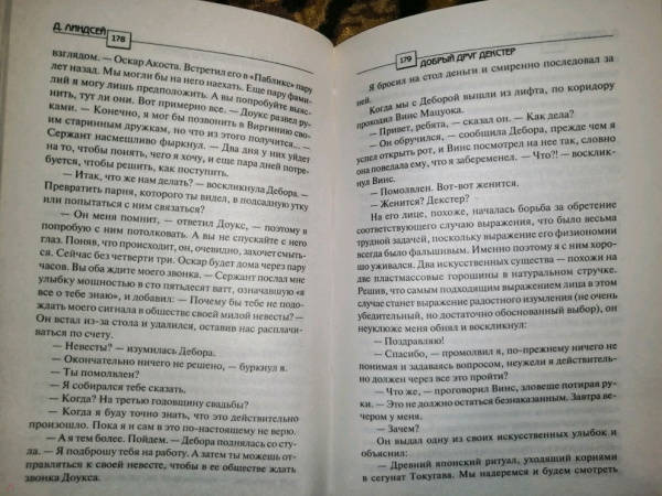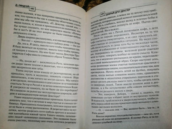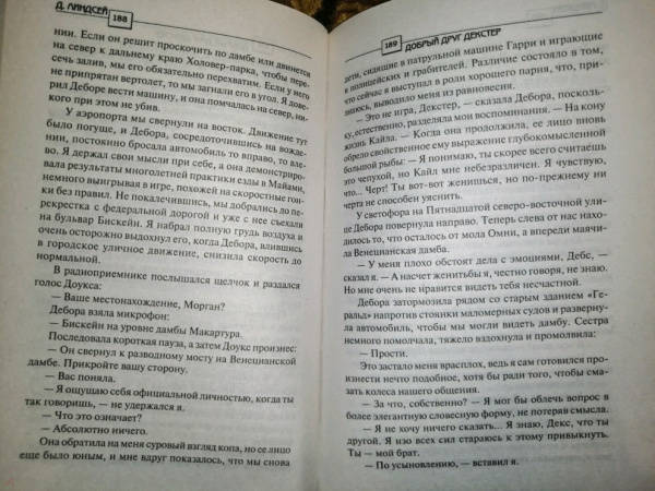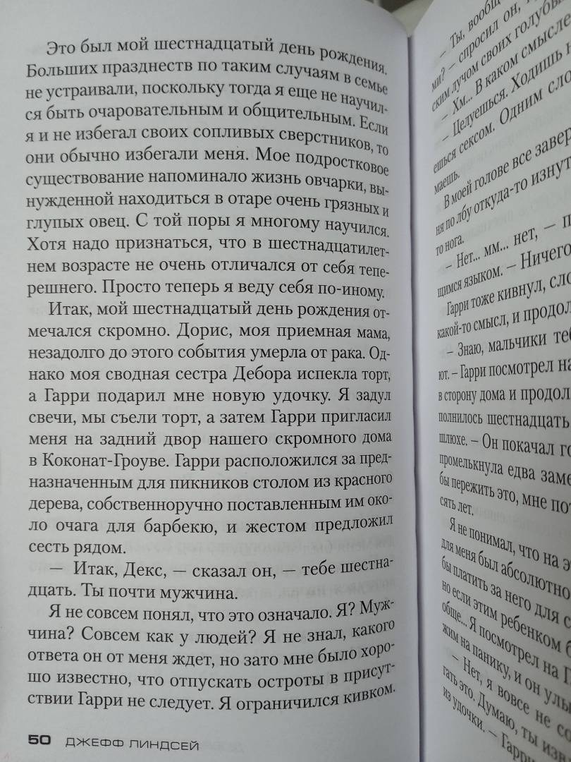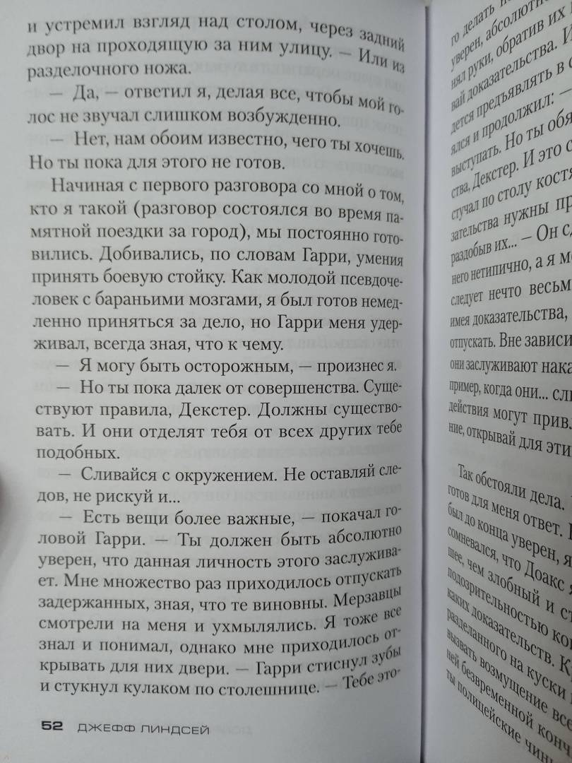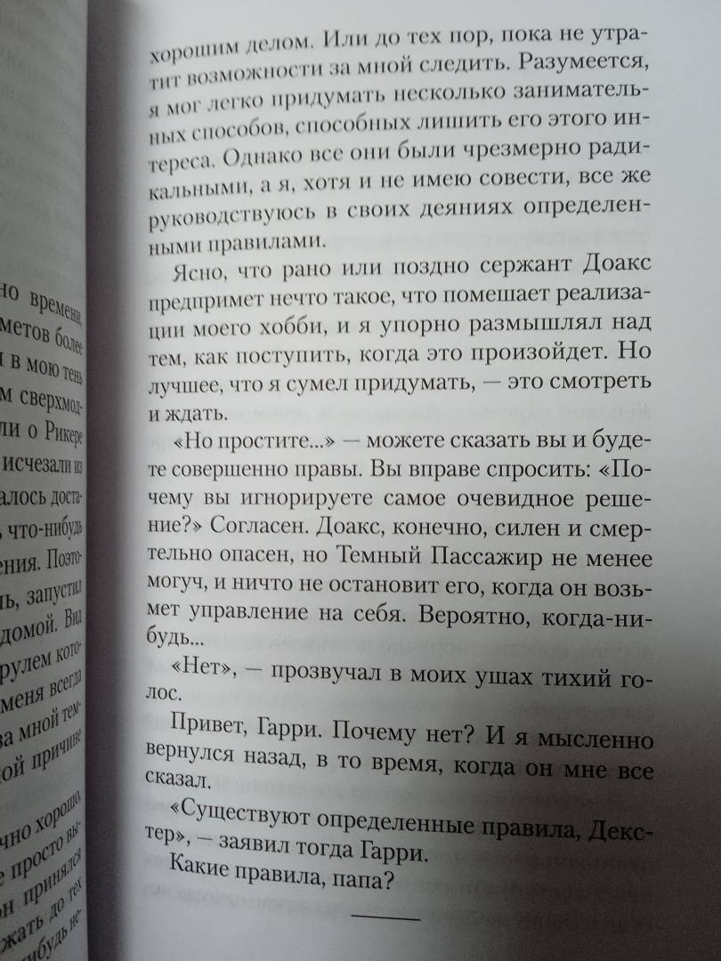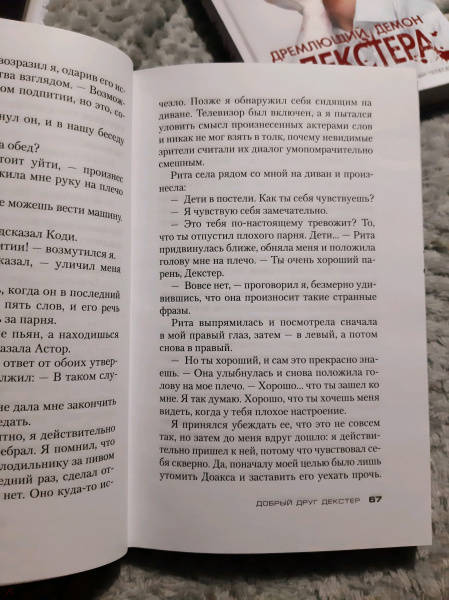 ОписаниеДекстер Морган - волк в овечьей шкуре. Он красив, обаятелен и очень прагматичен. При всем при том он серийный убийца, впрочем, придерживающийся золотого правила убивать только плохих людей. Чтобы избежать подозрений, Декстеру пришлось глубоко замаскироваться: проводить время со своей девушкой и ее детьми, постепенно становясь первым в мире серийным убийцей-домоседом. Но вот в Майами появляется психопат, который ампутирует у жертвы все, что только можно, не убивая ее. Извращенные приемы маньяка лишают дара речи даже Декстера. Когда его сестра Дебора, стойкий полицейский, втягивается в дело, становится ясно, что Декстеру придется выйти из укрытия и начать охоту на монстра. Если, конечно, убийца не найдет его первым... По роману "Дремлющий демон Декстера" в 2006 году был снят знаменитый сериал "Декстер", ставший суперуспешным и продлившийся 10 сезонов. В главную роль в нем исполнил Майкл С. Холл, позднее получивший за свое исполнение премию "Золотой глобус".Декстер Морган - волк в овечьей шкуре. Он красив, обаятелен и очень прагматичен. При всем при том он серийный убийца, впрочем, придерживающийся золотого правила убивать только плохих людей. Чтобы избежать подозрений, Декстеру пришлось глубоко замаскироваться: проводить время со своей девушкой и ее детьми, постепенно становясь первым в мире серийным убийцей-домоседом. Но вот в Майами появляется психопат, который ампутирует у жертвы все, что только можно, не убивая ее. Извращенные приемы маньяка лишают дара речи даже Декстера. Когда его сестра Дебора, стойкий полицейский, втягивается в дело, становится ясно, что Декстеру придется выйти из укрытия и начать охоту на монстра. Если, конечно, убийца не найдет его первым... По роману "Дремлющий демон Декстера" в 2006 году был снят знаменитый сериал "Декстер", ставший суперуспешным и продлившийся 10 сезонов. В главную роль в нем исполнил Майкл С. Холл, позднее получивший за свое исполнение премию "Золотой глобус".