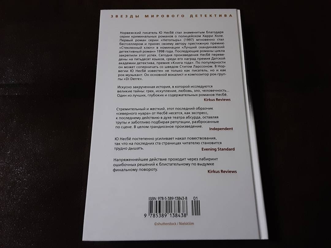 Объем, стр. 480 ISBN 978-5-389-13843-8 Автор Несбё Ю, Лавринайтис Екатерина Андреевна Переводчик Лавринайтис Екатерина Андреевна Серия Звезды мирового детектива (тв/обл.) Язык Русский Минимальный возраст 18+ Год издания книги 2021 Тип обложки Твердый переплет Иллюстрации Без иллюстраций Вес, г 520г Размеры 220х150х23 мм - Отзывы