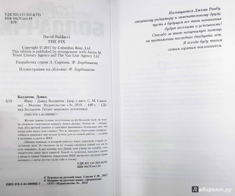Объем, стр. 480 ISBN 978-5-04-090995-7 Автор Болдаччи Дэвид, Саксин С. М. Переводчик Саксин С. М. Серия Дэвид Болдаччи. Гигант мирового детектива Язык Русский Минимальный возраст 16+ Год издания книги 2018 Тип обложки Твердый переплет Иллюстрации Без иллюстраций Вес, г 450г Размеры 207х135х30 мм - Отзывы