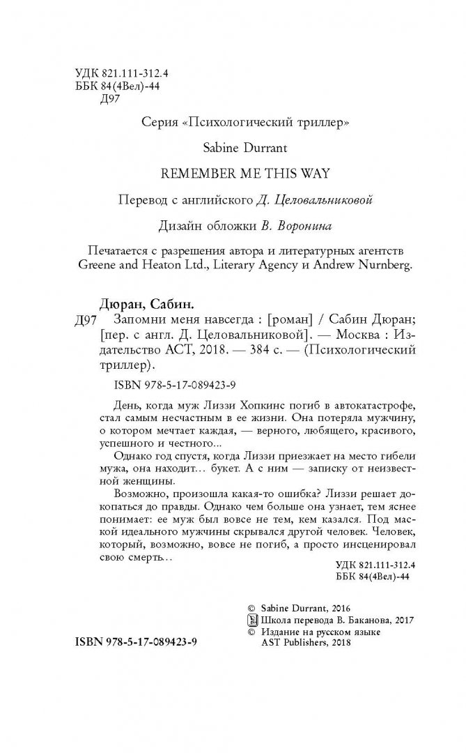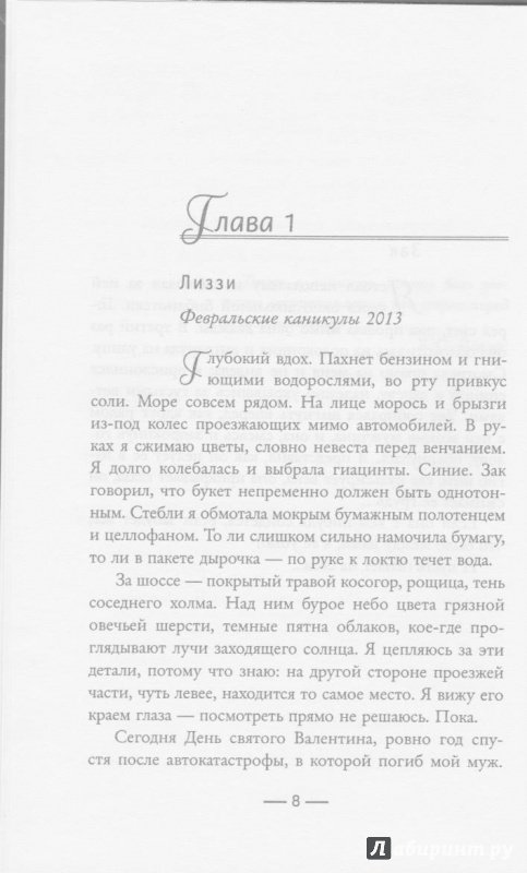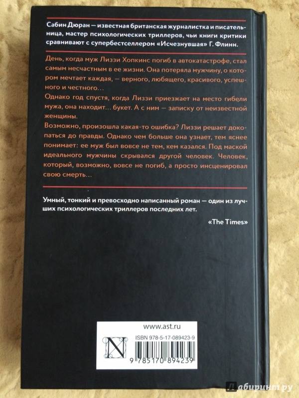 ОписаниеДень, когда муж Лиззи Хопкинс погиб в автокатастрофе, стал самым несчастным в ее жизни. Она потеряла мужчину, о котором мечтает каждая, - верного, любящего, красивого, успешного и честного...Однако год спустя, когда Лиззи приезжает на место гибели мужа, она находит… букет. А с ним - записку от неизвестной женщины.Возможно, произошла какая-то ошибка? Лиззи решает докопаться до правды. Однако чем больше она узнает, тем яснее понимает: ее муж был вовсе не тем, кем казался. Под маской идеального мужчины скрывался другой человек. Человек, который, возможно, вовсе не погиб, а просто инсценировал свою смерть…День, когда муж Лиззи Хопкинс погиб в автокатастрофе, стал самым несчастным в ее жизни. Она потеряла мужчину, о котором мечтает каждая, - верного, любящего, красивого, успешного и честного...Однако год спустя, когда Лиззи приезжает на место гибели мужа, она находит… букет. А с ним - записку от неизвестной женщины.Возможно, произошла какая-то ошибка? Лиззи решает докопаться до правды. Однако чем больше она узнает, тем яснее понимает: ее муж был вовсе не тем, кем казался. Под маской идеального мужчины скрывался другой человек. Человек, который, возможно, вовсе не погиб, а просто инсценировал свою смерть…