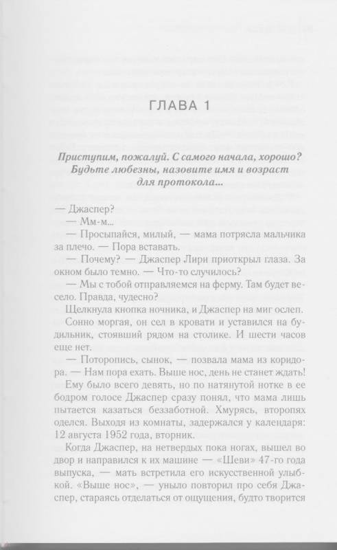 ОписаниеЧто заставило Алтею Лири исчезнуть, бросив сына на далекой ферме? Куда она пропала и как ее отыскать? В поисках ответов девятилетний Джаспер может рассчитывать только на себя. Старый мамин дневник указывает опасный, но верный путь - через игорные притоны, стрип-клубы, грязные городские проулки в глушь индейской резервации, хранящей немало жутких и постыдных тайн.Что заставило Алтею Лири исчезнуть, бросив сына на далекой ферме? Куда она пропала и как ее отыскать? В поисках ответов девятилетний Джаспер может рассчитывать только на себя. Старый мамин дневник указывает опасный, но верный путь - через игорные притоны, стрип-клубы, грязные городские проулки в глушь индейской резервации, хранящей немало жутких и постыдных тайн.