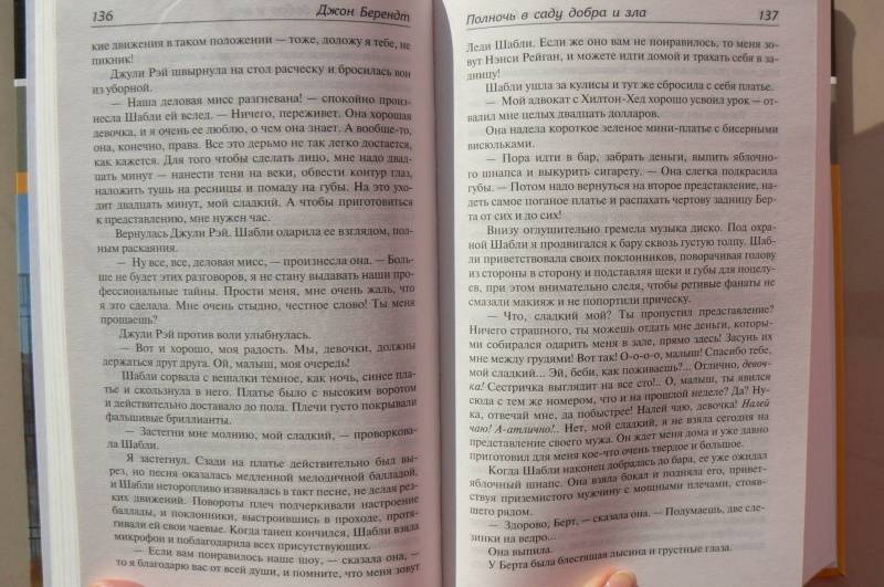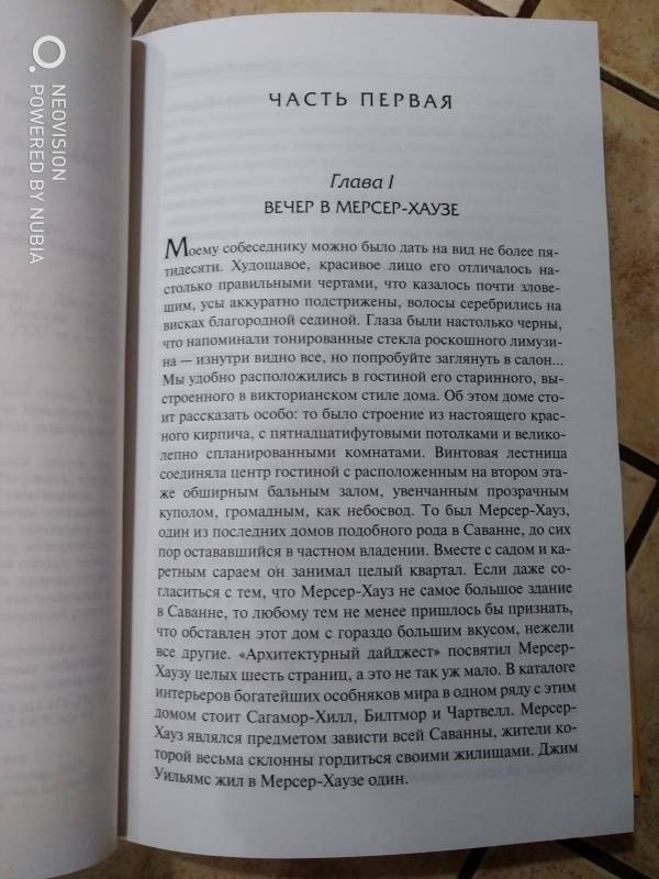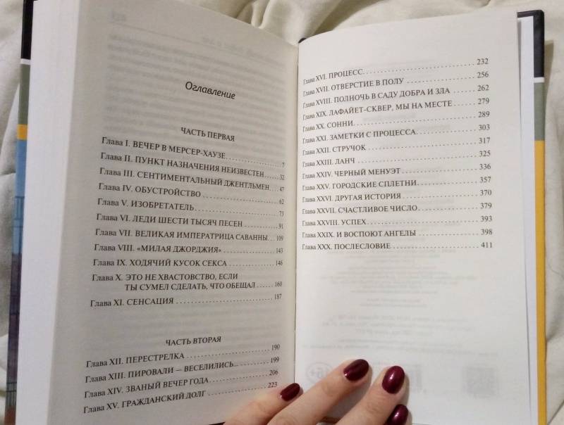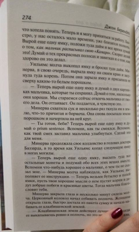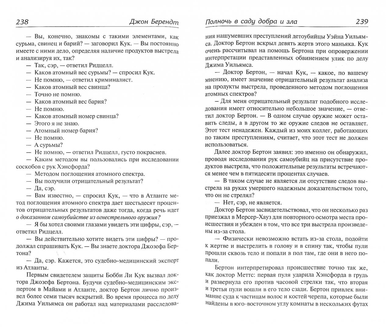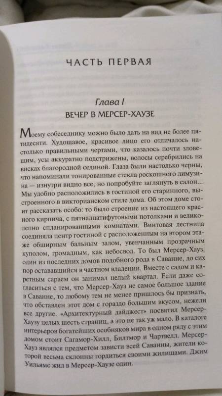 ОписаниеВ старинном особняке Саванны туманным утром 2 мая 1981 года прогремели выстрелы - убит Дэнни Хэнсфорд, молодой человек с сомнительной репутацией. Под подозрением оказывается хозяин дома… Так начинается расследование, длившееся десять лет. Именно столько времени потребовалось, чтобы узнать, что же все-таки тогда произошло - убийство или акт самозащиты. Однако главное в романе вовсе не детективная составляющая, а сам городок Саванна с его обитателями: светскими дамами из Карточного клуба замужних женщин; затворником, чья бутыль с ядом способна убить всех жителей города; пожилым человеком, выгуливающим каждый день несуществующую собаку; королевой красоты леди Шабли, выступающей в весьма экстравагантном шоу; жрицей вуду, проводящей ритуал ночью на кладбище… Самое интересное, что эта история и все ее персонажи - не вымысел. Джон Берендт, основываясь на реальных событиях, сумел создать роман, завоевавший сердца миллионов читателей.В старинном особняке Саванны туманным утром 2 мая 1981 года прогремели выстрелы - убит Дэнни Хэнсфорд, молодой человек с сомнительной репутацией. Под подозрением оказывается хозяин дома… Так начинается расследование, длившееся десять лет. Именно столько времени потребовалось, чтобы узнать, что же все-таки тогда произошло - убийство или акт самозащиты. Однако главное в романе вовсе не детективная составляющая, а сам городок Саванна с его обитателями: светскими дамами из Карточного клуба замужних женщин; затворником, чья бутыль с ядом способна убить всех жителей города; пожилым человеком, выгуливающим каждый день несуществующую собаку; королевой красоты леди Шабли, выступающей в весьма экстравагантном шоу; жрицей вуду, проводящей ритуал ночью на кладбище… Самое интересное, что эта история и все ее персонажи - не вымысел. Джон Берендт, основываясь на реальных событиях, сумел создать роман, завоевавший сердца миллионов читателей.