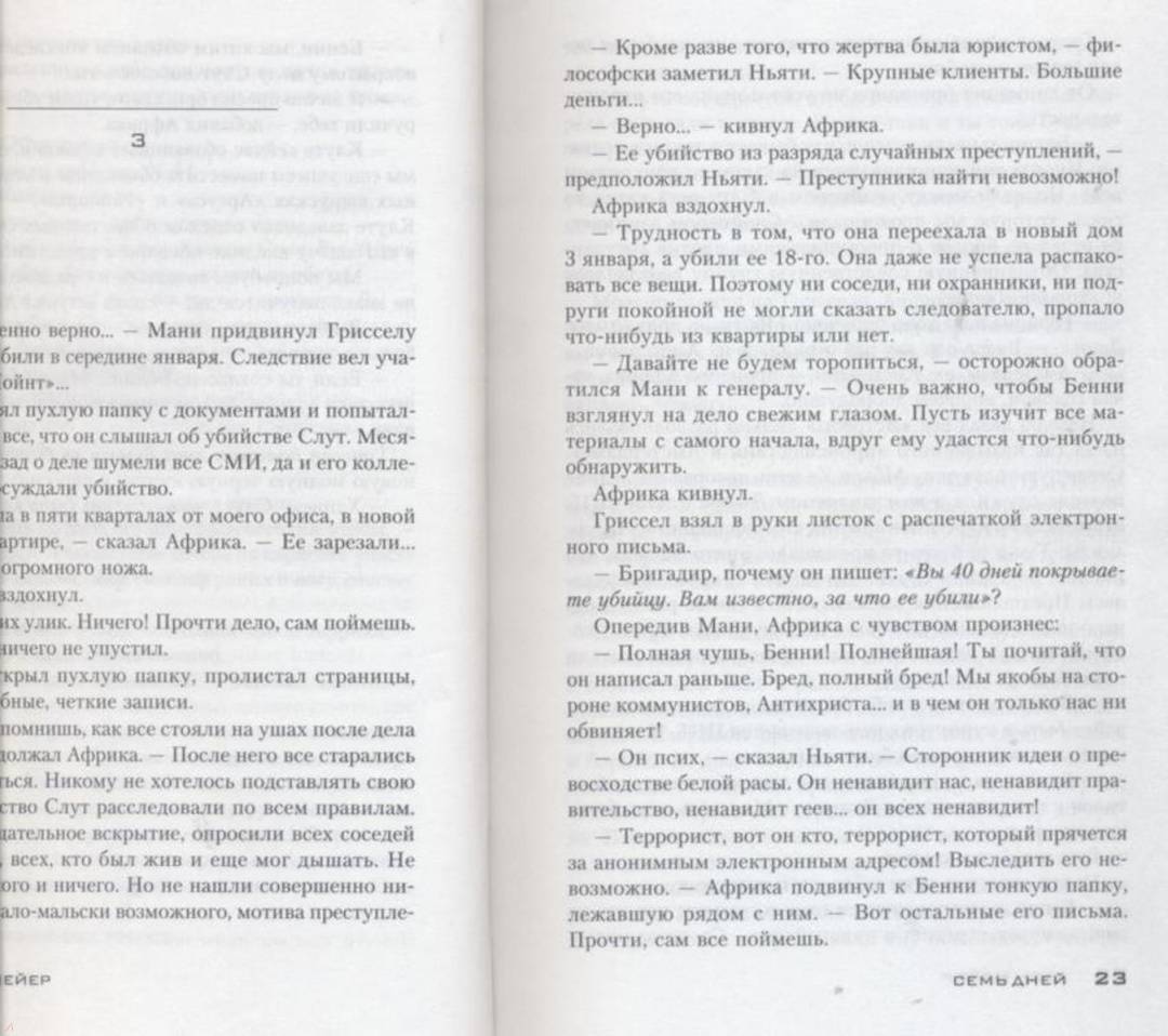 ---Деон Мейер: Семь днейРусская классическая и современная литератураДетектив. Остросюжетная литератураЗарубежная художественная литератураРусская художественная литератураФэнтезиДраматургияПоэзияПриключенияФантастикаЭпос и фольклорКлассическая прозаАфоризмыИсторическая прозаДетективыБасниСентиментальная прозаОтечественный боевикСовременная прозаМолодежная литератураЗарубежная классическая и современная литература