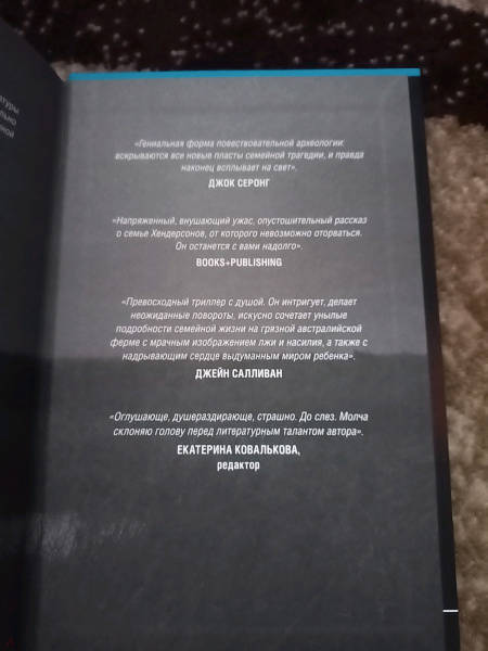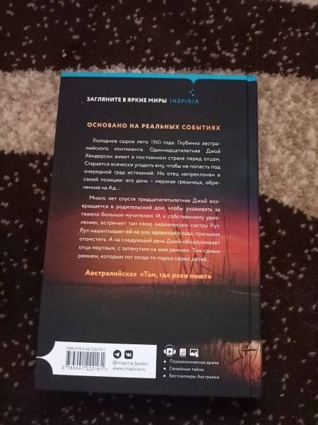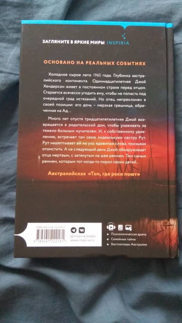 ОписаниеАвстралийская "Там где раки поют". Основано на реальных событияхДве сестры. Умирающий отец. И жуткая тайна - одна на троих…Холодное сырое лето 1960 года. Глубинка австралийского континента. Одиннадцатилетняя Джой Хендерсон живет в постоянном страхе перед отцом. Старается всячески угодить ему, чтобы избежать очередного града истязаний. Но отец всегда непреклонен: его дочь - мерзкая грешница, обреченная на Ад…Много лет спустя тридцатипятилетняя Джой возвращается в родительский дом, чтобы ухаживать за тяжело больным мучителем. И, к собственному удивлению, встречает там свою "идеальную" сестру Рут. Рут нашептывает ей на ухо ядовитые слова, призывая отомстить. А на следующий день Джой обнаруживает отца мертвым, с затянутым на шее ремнем. Тем самым ремнем, которым тот когда-то порол своих детей…Этот необычайно мощный и проникновенный роман переносит читателя между 1940-ми, 1960-ми и 1980-ми годами. Незабываемое литературное полотно, изображающее мрачную австралийскую глубинку, ее подчас жестоких обитателей - и тихие омуты человеческого сознания… "Душераздирающий, страшный и великолепно написанный роман, от которого у меня перехватывало дыхание. Йоварт моментально погрузила меня в жизнь сельской семьи, в которой властвует злой опасный деспот, роман не отпускал - от пугающего начала и до шокирующего конца". - Кирстен АлександерНапряженный. Запутанный. Не щадящий чувств. Роман - настоящая австралийская готика". - Лиам Пипер"Гениальная форма повествовательной археологии: вскрываются все новые пласты семейной трагедии, и правда наконец всплывает на свет". - Джок Серонг"Напряженный, внушающий ужас, опустошительный рассказ о семье Хендерсонов, от которого невозможно оторваться. Он останется с вами надолго". - Books+PublishingСвернутьАвстралийская "Там где раки поют". Основано на реальных событияхДве сестры. Умирающий отец. И жуткая тайна - одна на троих…Холодное сырое лето 1960 года. Глубинка австралийского континента. Одиннадцатилетняя Джой Хендерсон живет в постоянном страхе перед отцом. Старается всячески угодить ему, чтобы избежать очередного града истязаний. Но отец всегда непреклонен: его дочь - мерзкая грешница, обреченная на Ад…Много лет спустя тридцатипятилетняя Джой возвращается в родительский дом, чтобы ухаживать за тяжело больным мучителем. И, к собственному удивлению, встречает там свою "идеальную" сестру Рут. Рут нашептывает ей на ухо ядовитые слова, призывая отомстить. А на следующий день Джой обнаруживает отца мертвым, с затянутым на шее ремнем. Тем самым ремнем, которым тот когда-то порол своих детей…Этот необычайно мощный и проникновенный роман переносит читателя между 1940-ми, 1960-ми и 1980-ми годами. Незабываемое литературное полотно, изображающее мрачную австралийскую глубинку, ее подчас жестоких обитателей - и тихие омуты человеческого сознания… "Душераздирающий, страшный и великолепно написанный роман, от которого у меня перехватывало дыхание. Йоварт моментально погрузила меня в жизнь сельской семьи, в которой властвует злой опасный деспот, роман не отпускал - от пугающего начала и до шокирующего конца". - Кирстен АлександерНапряженный. Запутанный. Не щадящий чувств. Роман - настоящая австралийская готика". - Лиам Пипер"Гениальная форма повествовательной археологии: вскрываются все новые пласты семейной трагедии, и пр