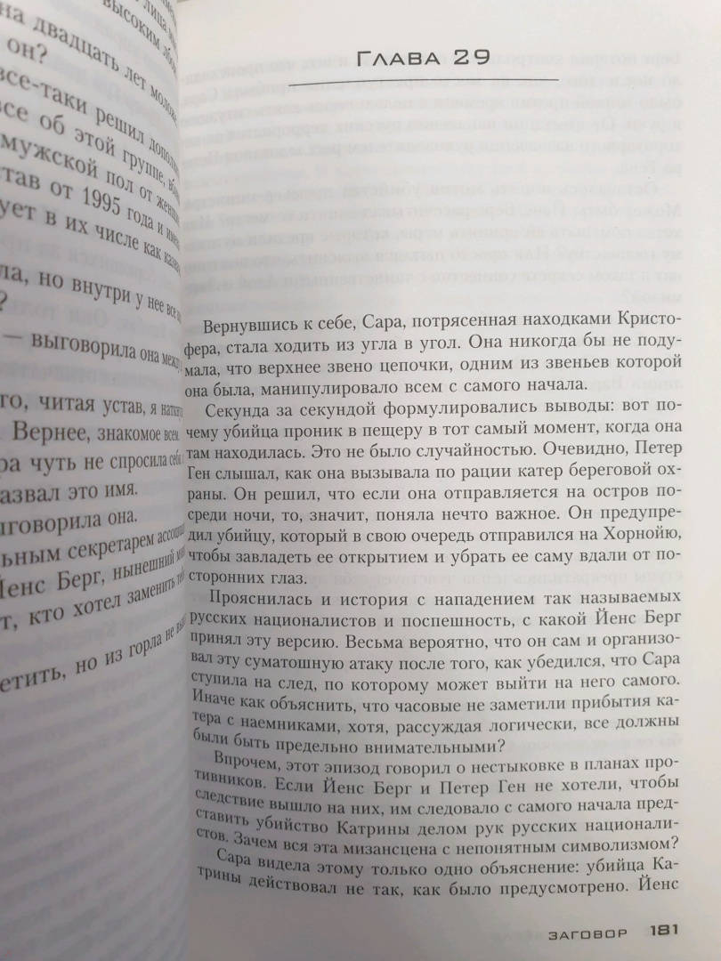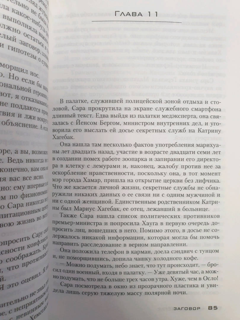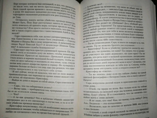 ОписаниеОбстоятельства жестокого убийства премьерминистра Катрины Хагебак были настолько странными, что все члены следственной группы пришли в замешательство. Инспектор Сара Геринген — лучший из лучших детективов Норвегии, в самом начале следствия вынуждена была признать, что впервые в своей карьере имеет дело с жертвой, сделавшей все, чтобы уничтожить улики, с помощью которых возможно было найти и предать суду убийцу. Сара была потрясена, придя к необъяснимому выводу: последние минуты своей жизни премьерминистр Катрина Хагебак посвятила защите личности убийцы.Обстоятельства жестокого убийства премьерминистра Катрины Хагебак были настолько странными, что все члены следственной группы пришли в замешательство. Инспектор Сара Геринген — лучший из лучших детективов Норвегии, в самом начале следствия вынуждена была признать, что впервые в своей карьере имеет дело с жертвой, сделавшей все, чтобы уничтожить улики, с помощью которых возможно было найти и предать суду убийцу. Сара была потрясена, придя к необъяснимому выводу: последние минуты своей жизни премьерминистр Катрина Хагебак посвятила защите личности убийцы.