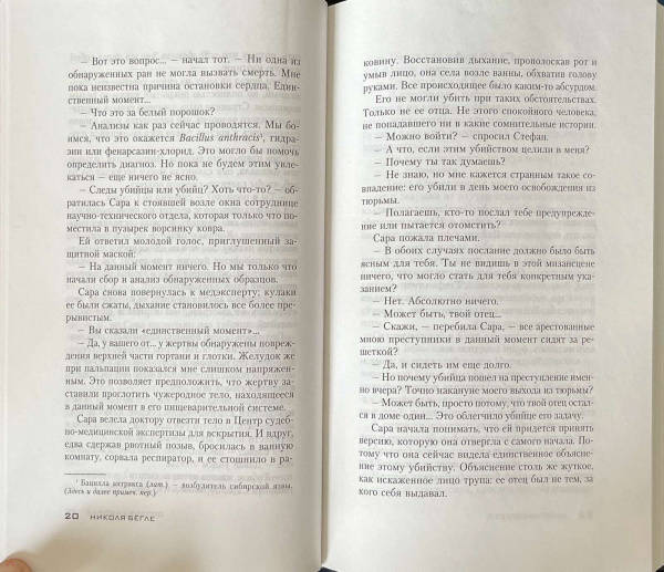 ОписаниеИнспектор норвежской полиции Сара Геринген оправдана после года, проведенного в тюрьме по обвинению в служебном преступлении. В день, когда ей предстоит выйти на свободу, на нее обрушивается новый удар: зверски убит ее отец. Перед смертью его жестоко пытали, руки изуродованы, в животе найден ключ, а труп посыпан странным белым порошком. Полицейский начальник Сары предлагает ей заняться поисками убийцы. Однако по закону в случае происшествий с родственниками это недопустимо, и формально руководить расследованием он назначает молодого офицера Адриана Колла. Это сотрудничество приносит первые успехи. Инициативный Колл обращает внимание Сары на важные детали, и вскоре они попадают в затерянный в лесу старый особняк. Отсюда начинается полный испытаний путь Сары к разгадке ужасающей семейной тайны.Инспектор норвежской полиции Сара Геринген оправдана после года, проведенного в тюрьме по обвинению в служебном преступлении. В день, когда ей предстоит выйти на свободу, на нее обрушивается новый удар: зверски убит ее отец. Перед смертью его жестоко пытали, руки изуродованы, в животе найден ключ, а труп посыпан странным белым порошком. Полицейский начальник Сары предлагает ей заняться поисками убийцы. Однако по закону в случае происшествий с родственниками это недопустимо, и формально руководить расследованием он назначает молодого офицера Адриана Колла. Это сотрудничество приносит первые успехи. Инициативный Колл обращает внимание Сары на важные детали, и вскоре они попадают в затерянный в лесу старый особняк. Отсюда начинается полный испытаний путь Сары к разгадке ужасающей семейной тайны.