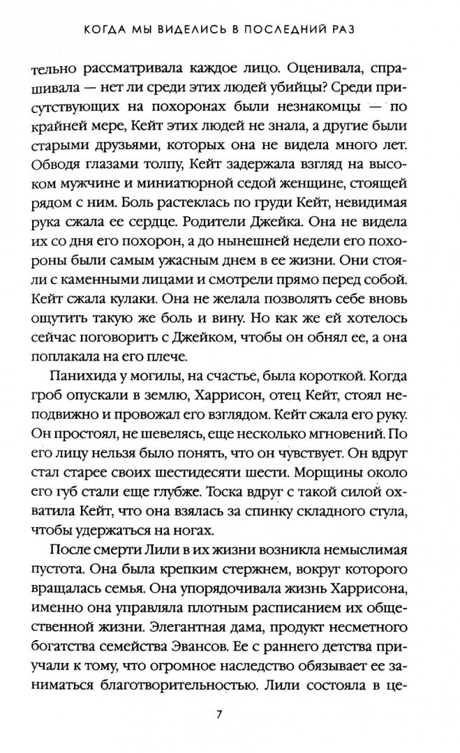 ОписаниеУ Кейт есть все, чего только можно пожелать. Богатое наследство, красавец-муж и умница-дочь, успешная карьера и прекрасный особняк.Все меняется, когда мать Кейт, Лили, находят жестоко убитой в собственном доме. Ошеломленная внезапной потерей, Кейт организовывает похороны, но горе сменяется ужасом, когда женщина получает анонимное сообщение:"Думаешь, тебе сейчас грустно? К тому времени, когда я с тобой покончу, ты пожалеешь о том, что тебя тоже не похоронили сегодня".Кем бы ни был убийца, очевидно, что Кейт - следующая в его списке жертв...У Кейт есть все, чего только можно пожелать. Богатое наследство, красавец-муж и умница-дочь, успешная карьера и прекрасный особняк.Все меняется, когда мать Кейт, Лили, находят жестоко убитой в собственном доме. Ошеломленная внезапной потерей, Кейт организовывает похороны, но горе сменяется ужасом, когда женщина получает анонимное сообщение:"Думаешь, тебе сейчас грустно? К тому времени, когда я с тобой покончу, ты пожалеешь о том, что тебя тоже не похоронили сегодня".Кем бы ни был убийца, очевидно, что Кейт - следующая в его списке жертв...