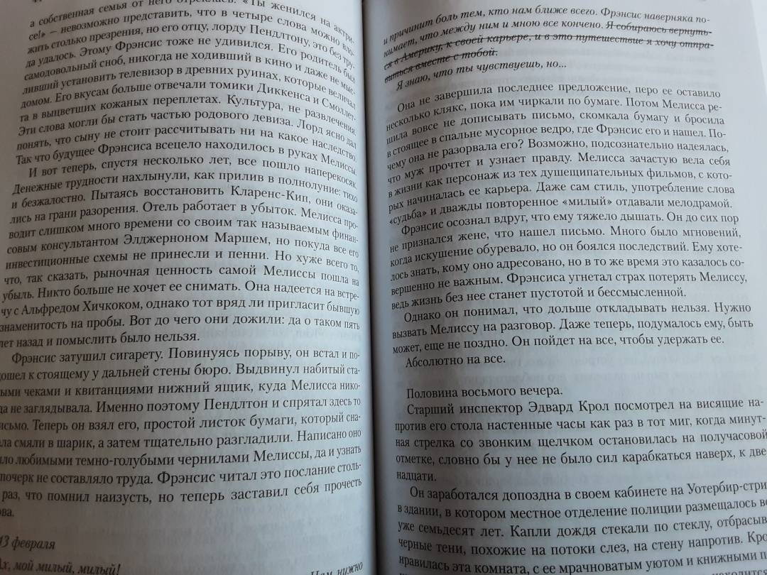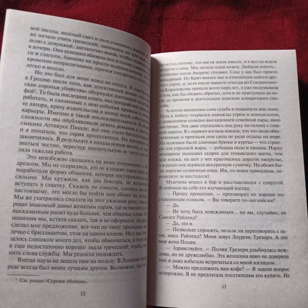 ОписаниеСмерть знаменитого писателя Алана Конвея поставила точку в редакторской карьере Сьюзен Райленд. Теперь она управляет отелем на берегу Эгейского моря, однако не слишком успешно - денег катастрофически не хватает. Скучая по лондонской суете, Сьюзен подумывает о том, не сбежать ли из этого райского местечка, и кажется, сама судьба подкидывает ей шанс. Супруги-англичане обращаются к Райленд за помощью, обещая хорошо заплатить. Исчезла их дочь, успев признаться родителям, что на страницах детективного романа Конвея нашла ключ к разгадке кровавого преступления, совершенного восемь лет назад в Суффолке... Редактором этой книжной серии, оказывается, была Сьюзен. Удастся ли ей распутать хитросплетения авторской мысли? Мисс Райленд срочно отправляется в Англию, испытывая настоящий азарт сыщика, и ей не сразу приходит в голову, что нельзя безнаказанно ворошить тайны прошлого. Но это становится очевидным, когда над ней нависает смертельная опасность... Роман в романе, литературная игра, полная загадок и мистификаций!СвернутьСмерть знаменитого писателя Алана Конвея поставила точку в редакторской карьере Сьюзен Райленд. Теперь она управляет отелем на берегу Эгейского моря, однако не слишком успешно - денег катастрофически не хватает. Скучая по лондонской суете, Сьюзен подумывает о том, не сбежать ли из этого райского местечка, и кажется, сама судьба подкидывает ей шанс. Супруги-англичане обращаются к Райленд за помощью, обещая хорошо заплатить. Исчезла их дочь, успев признаться родителям, что на страницах детективного романа Конвея нашла ключ к разгадке кровавого преступления, совершенного восемь лет назад в Суффолке... Редактором этой книжной серии, оказывается, была Сьюзен. Удастся ли ей распутать хитросплетения авторской мысли? Мисс Райленд срочно отправляется в Англию, испытывая настоящий азарт сыщика, и ей не сразу приходит в голову, что нельзя безнаказанно ворошить тайны прошлого. Но это становится очевидным, когда над ней нависает смертельная опасность... Роман в романе, литературная игра, полная загадок и мистификаций!СвернутьСвернуть