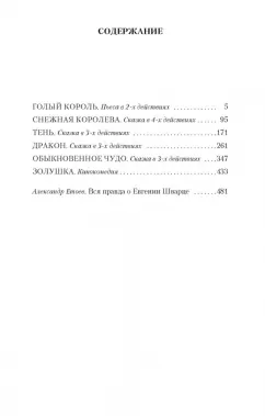 ОписаниеЕвгений Шварц — замечательный сказочник, автор любимых нами с детства пьес «Снежная королева», «Золушка», «Тень», «Голый король». В настоящее издание включены также хорошо известные по киноверсиям пьесы Е. Шварца «Дракон» и «Обыкновенное чудо».Евгений Шварц — замечательный сказочник, автор любимых нами с детства пьес «Снежная королева», «Золушка», «Тень», «Голый король». В настоящее издание включены также хорошо известные по киноверсиям пьесы Е. Шварца «Дракон» и «Обыкновенное чудо».