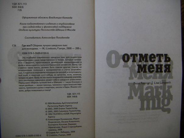 --Где все? Сборник лучших шведских пьес для молодежиРусская классическая и современная литератураЗарубежная художественная литератураРусская художественная литератураФэнтезиДраматургияПоэзияПриключенияФантастикаЭпос и фольклорКлассическая прозаАфоризмыИсторическая прозаДетективыБасниСентиментальная прозаОтечественный боевикСовременная прозаМолодежная литератураЗарубежная классическая и современная литература