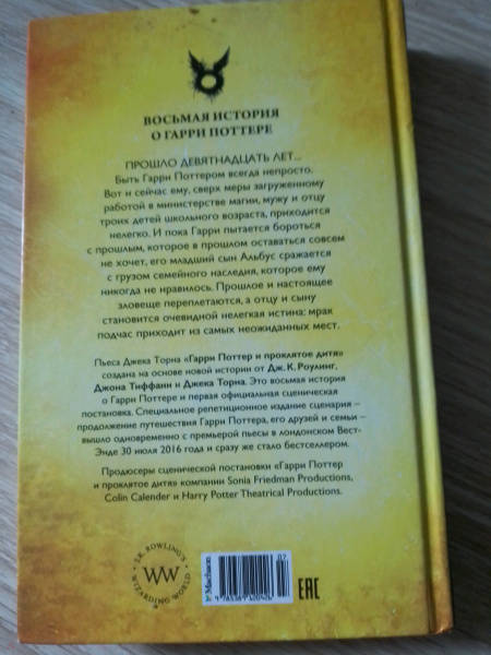 ОписаниеПьеса Джека Торна "Гарри Поттер и проклятое дитя" создана на основе оригинальной истории от Дж.К. Роулинг, Джона Тиффани и Джека Торна. Это восьмая книга о Гарри Поттере и первая официальная сценическая постановка. Настоящая версия сценария является финальной и включает дополнительные материалы: генеалогическое древо семьи Гарри Поттера, хронологию важнейших событий в жизни Гарри Поттера и беседу Джона Тиффани и Джека Торна о сценарии.Для детей среднего школьного возраста.Пьеса Джека Торна "Гарри Поттер и проклятое дитя" создана на основе оригинальной истории от Дж.К. Роулинг, Джона Тиффани и Джека Торна. Это восьмая книга о Гарри Поттере и первая официальная сценическая постановка. Настоящая версия сценария является финальной и включает дополнительные материалы: генеалогическое древо семьи Гарри Поттера, хронологию важнейших событий в жизни Гарри Поттера и беседу Джона Тиффани и Джека Торна о сценарии.Для детей среднего школьного возраста.