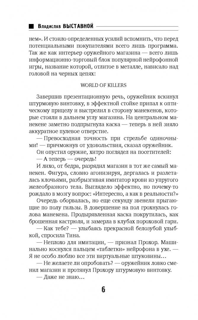 Описание"Мир киллеров" - новейшая игра с полным эффектом присутствия. Выбор оружия, опасная цель и война всех против всех в мире, неотличимом от реального. Карьера, рейтинги, хайп, но главное - громадный джек-пот за победу в турнире. Здесь все, что нужно, чтобы получить запредельную дозу адреналина и прославиться в мире киберспорта. Новому игроку с ником Провидец не нужны ни адреналин, ни рейтинги. Он пришел с настоящей войны. Его цель - главный приз, деньги на спасение близкого человека. Но что-то пошло не так. Драйвовая игра предстает совсем в другом виде перед геймерами. Провидец - на краю смерти. Подаст ли ему кто-нибудь руку помощи, пусть даже из Ада?"Мир киллеров" - новейшая игра с полным эффектом присутствия. Выбор оружия, опасная цель и война всех против всех в мире, неотличимом от реального. Карьера, рейтинги, хайп, но главное - громадный джек-пот за победу в турнире. Здесь все, что нужно, чтобы получить запредельную дозу адреналина и прославиться в мире киберспорта. Новому игроку с ником Провидец не нужны ни адреналин, ни рейтинги. Он пришел с настоящей войны. Его цель - главный приз, деньги на спасение близкого человека. Но что-то пошло не так. Драйвовая игра предстает совсем в другом виде перед геймерами. Провидец - на краю смерти. Подаст ли ему кто-нибудь руку помощи, пусть даже из Ада?
