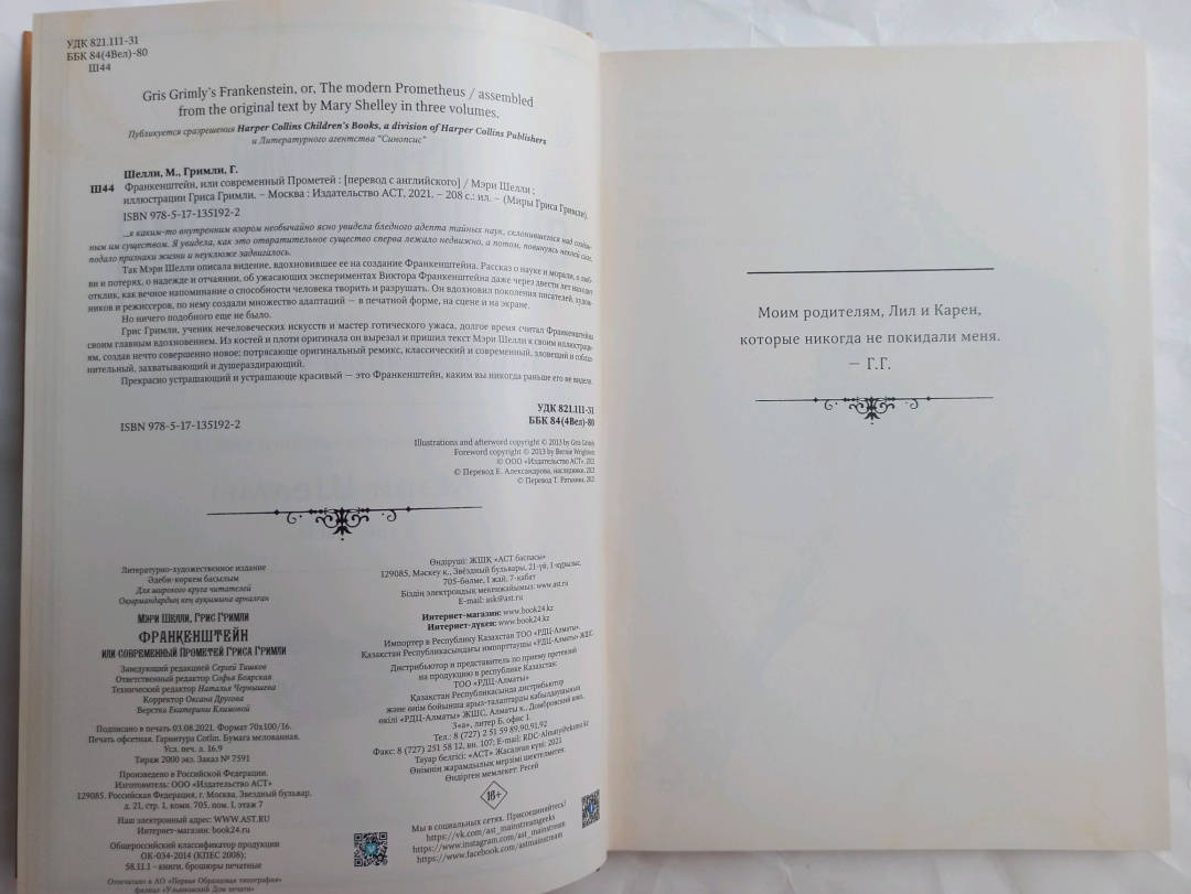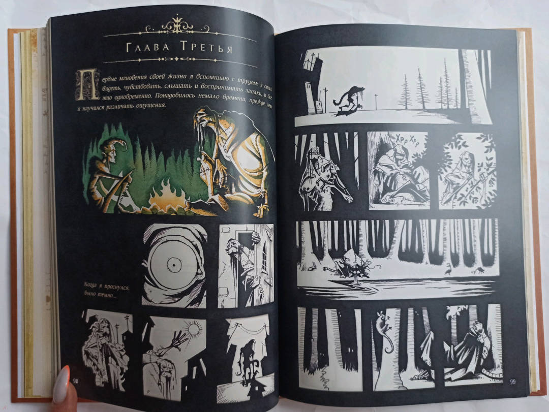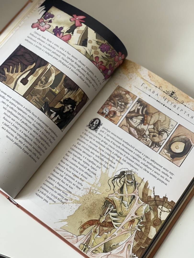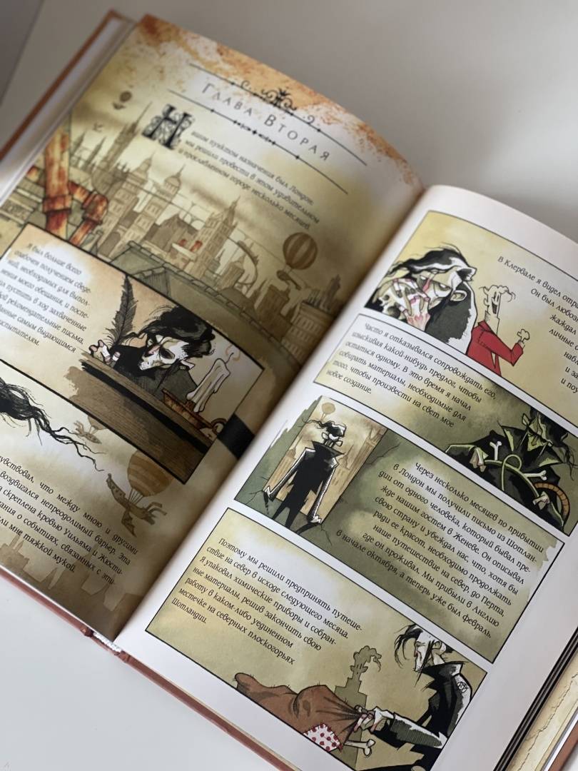 Описание…я каким-то внутренним взором необычайно ясно увидела бледного адепта тайных наук, склонившегося над созданным им существом. Я увидела, как это отвратительное существо сперва лежало недвижно, а потом, повинуясь некоей силе, подало признаки жизни и неуклюже задвигалось.Так Мэри Шелли описала видение, вдохновившее ее на создание Франкенштейна. Рассказ о науке и морали, о любви и потерях, о надежде и отчаянии, об ужасающих экспериментах Виктора Франкенштейна даже через двести лет находит отклик, каквечное напоминание о способности человека творить и разрушать. Он вдохновил поколения писателей, художников и режиссеров, по нему создали множество адаптаций — в печатной форме, на сцене и на экране.Но ничего подобного еще не было.Грис Гримли, ученик нечеловеческих искусств и мастер готического ужаса, долгое время считал Франкенштейна своим главным вдохновением. Из костей и плоти оригинала он вырезал и пришил текст Мэри Шелли к своим иллюстрациям, создав нечто совершенно новое: потрясающе оригинальный ремикс, классический и современный, зловещий и соблазнительный, захватывающий и душераздирающий.Прекрасно устрашающий и устрашающе красивый — это Франкенштейн, каким вы никогда раньше не видели.Свернуть…я каким-то внутренним взором необычайно ясно увидела бледного адепта тайных наук, склонившегося над созданным им существом. Я увидела, как это отвратительное существо сперва лежало недвижно, а потом, повинуясь некоей силе, подало признаки жизни и неуклюже задвигалось.Так Мэри Шелли описала видение, вдохновившее ее на создание Франкенштейна. Рассказ о науке и морали, о любви и потерях, о надежде и отчаянии, об ужасающих экспериментах Виктора Франкенштейна даже через двести лет находит отклик, каквечное напоминание о способности человека творить и разрушать. Он вдохновил поколения писателей, художников и режиссеров, по нему создали множество адаптаций — в печатной форме, на сцене и на экране.Но ничего подобного еще не было.Грис Гримли, ученик нечеловеческих искусств и мастер готического ужаса, долгое время считал Франкенштейна своим главным вдохновением. Из костей и плоти оригинала он вырезал и пришил текст Мэри Шелли к своим иллюстрациям, создав нечто совершенно новое: потрясающе оригинальный ремикс, классический и современный, зловещий и соблазнительный, захватывающий и душераздирающий.Прекрасно устрашающий и устрашающе красивый — это Франкенштейн, каким вы никогда раньше не видели.СвернутьСвернуть