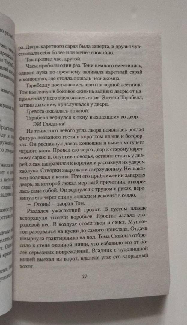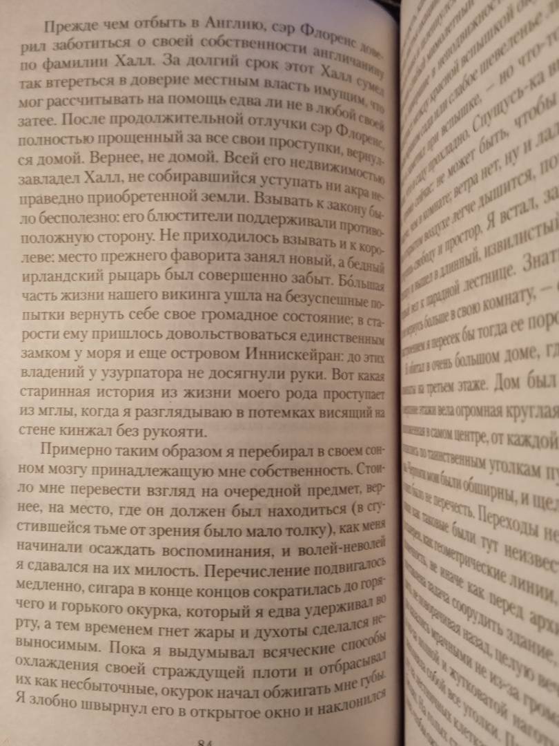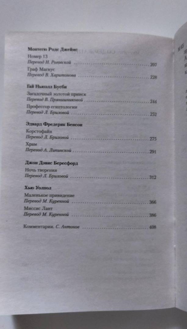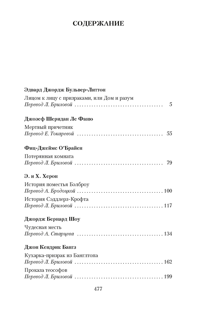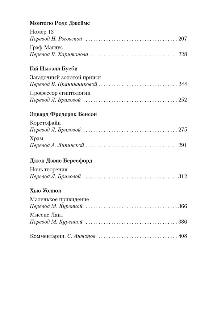 ОписаниеВключенные в сборник произведения английских, ирландских, американских писателей XIX–XX веков объединяет, при всем их разнообразии, тема сверхъестественного, то и дело проникающего сквозь тонкий покров обыденной реальности в человеческую жизнь. На страницах этой книги читатель столкнется с необъяснимыми и зловещими событиями, которые разыгрались в пустующем доме в самом центре Лондона, и с призрачной мумией-вампиром, тревожащей обитателей поместья на востоке Англии; прочтет анекдот о деревенском кладбище, за одну ночь переместившемся на другой берег реки, и истории о пропавшей комнате и «заколдованном» гостиничном номере; окажется лицом к лицу с покойным шведским графом, совершившим некогда «черное паломничество» в места, где, по преданию, родился Антихрист, и с темными, смертельно опасными загадками из кельтского прошлого полуострова Корнуолл... Среди авторов, развивающих эти мистические сюжеты, — классики викторианской прозы Эдвард Бульвер-Литтон, Джозеф Шеридан Ле Фаню, Монтегю Родс Джеймс, а также знаменитый драматург Бернард Шоу.СвернутьВключенные в сборник произведения английских, ирландских, американских писателей XIX–XX веков объединяет, при всем их разнообразии, тема сверхъестественного, то и дело проникающего сквозь тонкий покров обыденной реальности в человеческую жизнь. На страницах этой книги читатель столкнется с необъяснимыми и зловещими событиями, которые разыгрались в пустующем доме в самом центре Лондона, и с призрачной мумией-вампиром, тревожащей обитателей поместья на востоке Англии; прочтет анекдот о деревенском кладбище, за одну ночь переместившемся на другой берег реки, и истории о пропавшей комнате и «заколдованном» гостиничном номере; окажется лицом к лицу с покойным шведским графом, совершившим некогда «черное паломничество» в места, где, по преданию, родился Антихрист, и с темными, смертельно опасными загадками из кельтского прошлого полуострова Корнуолл... Среди авторов, развивающих эти мистические сюжеты, — классики викторианской прозы Эдвард Бульвер-Литтон, Джозеф Шеридан Ле Фаню, Монтегю Родс Джеймс, а также знаменитый драматург Бернард Шоу.СвернутьСвернуть
