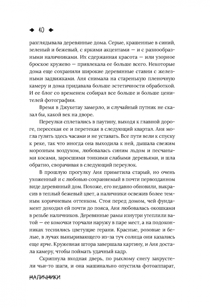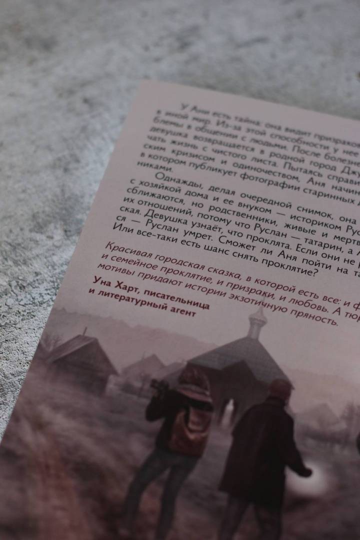ОписаниеУ Ани есть тайна: она видит призраков и помогает им уйти виной мир. Из-за этой способности у нее часто бывают проблемы в общении с людьми. После болезненного расставания девушка возвращается в родной город Джукетау, чтобы начать жизнь с чистого листа. Пытаясь справиться с писательским кризисом и одиночеством, Аня начинает вести блог, в котором публикует фотографии старинных домов с наличниками.Однажды, делая очередной снимок, она сталкивается с хозяйкой дома и ее внуком - историком Русланом. Они сближаются, но родственники, живые и мертвые, против их отношений, потому что Руслан - татарин, а Аня - русская. Девушка узнаёт, что проклята. Если они не расстанутся - Руслан умрет. Сможет ли Аня пойти на такой шаг? Или все-таки есть шанс снять проклятие?У Ани есть тайна: она видит призраков и помогает им уйти виной мир. Из-за этой способности у нее часто бывают проблемы в общении с людьми. После болезненного расставания девушка возвращается в родной город Джукетау, чтобы начать жизнь с чистого листа. Пытаясь справиться с писательским кризисом и одиночеством, Аня начинает вести блог, в котором публикует фотографии старинных домов с наличниками.Однажды, делая очередной снимок, она сталкивается с хозяйкой дома и ее внуком - историком Русланом. Они сближаются, но родственники, живые и мертвые, против их отношений, потому что Руслан - татарин, а Аня - русская. Девушка узнаёт, что проклята. Если они не расстанутся - Руслан умрет. Сможет ли Аня пойти на такой шаг? Или все-таки есть шанс снять проклятие?