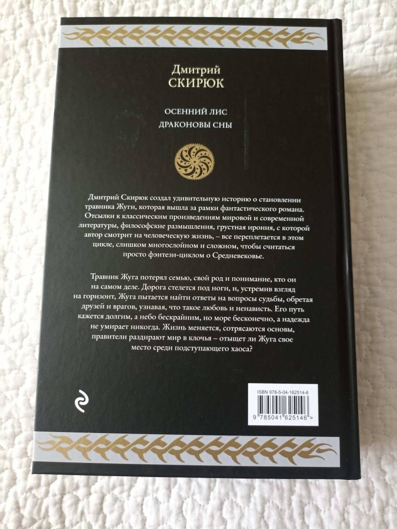 ОписаниеТравник Жуга потерял семью, свой род и понимание, кто он на самом деле. Дорога стелется под ноги, и, устремив взгляд в горизонт, Жуга пытается найти ответы на вопросы судьбы, обретая друзей и врагов, узнавая, что такое любовь и ненависть. Его путь кажется долгим, а небо бескрайним, но море бесконечно, а надежда не умирает никогда. Жизнь меняется, сотрясаются основы, правители раздирают мир в клочья — отыщет ли Жуга свое место среди подступающего хаоса? Переиздание первых двух книг цикла о травнике Жуге в омнибусе. В издание входят романы «Осенний лис» и «Драконовы сны». Отсылки к классическим и современным произведениям литературы, тонкая авторская ирония, подкупающая читателя. Цикл заслуженно сравнивают с «Ведьмаком» Анджея Сапковского.Травник Жуга потерял семью, свой род и понимание, кто он на самом деле. Дорога стелется под ноги, и, устремив взгляд в горизонт, Жуга пытается найти ответы на вопросы судьбы, обретая друзей и врагов, узнавая, что такое любовь и ненависть. Его путь кажется долгим, а небо бескрайним, но море бесконечно, а надежда не умирает никогда. Жизнь меняется, сотрясаются основы, правители раздирают мир в клочья — отыщет ли Жуга свое место среди подступающего хаоса? Переиздание первых двух книг цикла о травнике Жуге в омнибусе. В издание входят романы «Осенний лис» и «Драконовы сны». Отсылки к классическим и современным произведениям литературы, тонкая авторская ирония, подкупающая читателя. Цикл заслуженно сравнивают с «Ведьмаком» Анджея Сапковского.