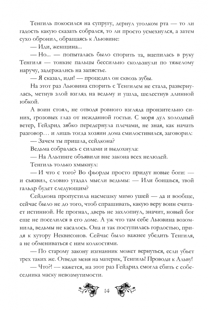 ОписаниеТьма сгущается над фьордами. Приходят новые боги, объявлены вне закона все нелюди, скоро и древняя магия - сейд окажется под запретом… На что же сейчас способна сейдкона?Взять в ученицы нелюдь, отправиться в дальний путь на материк, спуститься в забытый курган, поспорить с предводительницей Дикой Охоты… И все для того, чтобы помочь Альву Неквисону, Изгнаннику, вернуться обратно во фьорды. Но человек предполагает, а норны прядут нити судеб…Тьма сгущается над фьордами. Приходят новые боги, объявлены вне закона все нелюди, скоро и древняя магия - сейд окажется под запретом… На что же сейчас способна сейдкона?Взять в ученицы нелюдь, отправиться в дальний путь на материк, спуститься в забытый курган, поспорить с предводительницей Дикой Охоты… И все для того, чтобы помочь Альву Неквисону, Изгнаннику, вернуться обратно во фьорды. Но человек предполагает, а норны прядут нити судеб…