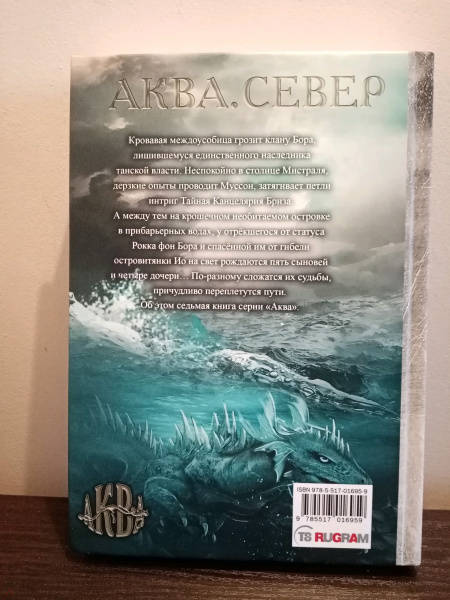 ОписаниеКровавая междоусобица грозит клану Бора, лишившемуся единственного наследника танской власти. Неспокойно в столице Мистраля, дерзкие опыты проводит Муссон, затягивает петли интриг Тайная Канцелярия Бриза.А между тем на крошечном необитаемом островке в прибарьерных водах, у отрёкшегося от статуса Рокка фон Бора и спасённой им от гибели островитянки Ио на свет рождаются пять сыновей и четыре дочери... По-разному сложатся их судьбы, причудливо переплетутся пути.Об этом седьмая книга серии «Аква».Кровавая междоусобица грозит клану Бора, лишившемуся единственного наследника танской власти. Неспокойно в столице Мистраля, дерзкие опыты проводит Муссон, затягивает петли интриг Тайная Канцелярия Бриза.А между тем на крошечном необитаемом островке в прибарьерных водах, у отрёкшегося от статуса Рокка фон Бора и спасённой им от гибели островитянки Ио на свет рождаются пять сыновей и четыре дочери... По-разному сложатся их судьбы, причудливо переплетутся пути.Об этом седьмая книга серии «Аква».