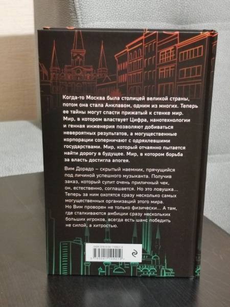 ОписаниеКогда-то Москва была столицей великой страны, потом она стала Анклавом, одним из многих. Теперь ее тайны могут спасти прижатый к стенке мир. Мир, в котором властвует Цифра, нанотехнологии и генная инженерия позволяют добиваться невероятных результатов, а могущественные корпорации соперничают с одряхлевшими государствами. Мир, который отчаянно пытается найти дорогу в будущее. Мир, в котором борьба за власть достигла апогея.Вим Дорадо - скрытый наёмник, прячущийся под личиной успешного музыканта. Получив заказ, который сулит очень приличный чек, он, естественно, соглашается. Но это ловушка… Теперь за ним охотятся сразу несколько самых могущественных организаций этого мира. Но Вим проворен не только физически... А там, где сталкиваются амбиции сразу нескольких больших игроков, всегда есть шанс победить не силой, а хитростью.Когда-то Москва была столицей великой страны, потом она стала Анклавом, одним из многих. Теперь ее тайны могут спасти прижатый к стенке мир. Мир, в котором властвует Цифра, нанотехнологии и генная инженерия позволяют добиваться невероятных результатов, а могущественные корпорации соперничают с одряхлевшими государствами. Мир, который отчаянно пытается найти дорогу в будущее. Мир, в котором борьба за власть достигла апогея.Вим Дорадо - скрытый наёмник, прячущийся под личиной успешного музыканта. Получив заказ, который сулит очень приличный чек, он, естественно, соглашается. Но это ловушка… Теперь за ним охотятся сразу несколько самых могущественных организаций этого мира. Но Вим проворен не только физически... А там, где сталкиваются амбиции сразу нескольких больших игроков, всегда есть шанс победить не силой, а хитростью.
