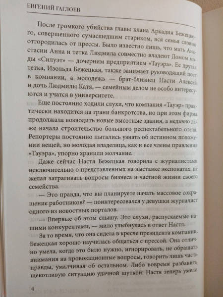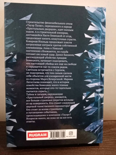 ОписаниеСтроительство фешенебельного отеля "Тауэр Палас", окрещенного в народе "Хрустальным дворцом", идет полным ходом. А в строительной империи, доставшейся Насте Бежецкой от отца, продолжают кипеть нешуточные страсти. Коварная Изольда продолжает плести хитроумные интриги против собственной племянницы. Анна и Николай постепенно сближаются, но судьба готовит им новый удар. Данил Бакшеев, расследующий убийство Аркадия Бежецкого, начинает подозревать, что настоящий убийца все еще на свободе и скрывается где-то совсем рядом. Светлана встречается с Сергеем, не подозревая, что тем самым сделала себя объектом для изощренной мести со стороны Марго Кочергиной. Марина Легостаева понимает, что в истории семейства Бежецких много темных моментов, которые кто-то тщательно пытается скрыть. Тайны и загадки, окружающие "Хрустальный дворец", множатся, все больше страшных секретов всплывает на поверхность. Кто станет следующей жертвой таинственного махинатора? Кто стоит за всеми странными и пугающими событиями, происходящими в компании "Тауэр"? Вопросов много, но пока не на все есть ответы.СвернутьСтроительство фешенебельного отеля "Тауэр Палас", окрещенного в народе "Хрустальным дворцом", идет полным ходом. А в строительной империи, доставшейся Насте Бежецкой от отца, продолжают кипеть нешуточные страсти. Коварная Изольда продолжает плести хитроумные интриги против собственной племянницы. Анна и Николай постепенно сближаются, но судьба готовит им новый удар. Данил Бакшеев, расследующий убийство Аркадия Бежецкого, начинает подозревать, что настоящий убийца все еще на свободе и скрывается где-то совсем рядом. Светлана встречается с Сергеем, не подозревая, что тем самым сделала себя объектом для изощренной мести со стороны Марго Кочергиной. Марина Легостаева понимает, что в истории семейства Бежецких много темных моментов, которые кто-то тщательно пытается скрыть. Тайны и загадки, окружающие "Хрустальный дворец", множатся, все больше страшных секретов всплывает на поверхность. Кто станет следующей жертвой таинственного махинатора? Кто стоит за всеми странными и пугающими событиями, происходящими в компании "Тауэр"? Вопросов много, но пока не на все есть ответы.СвернутьСвернуть