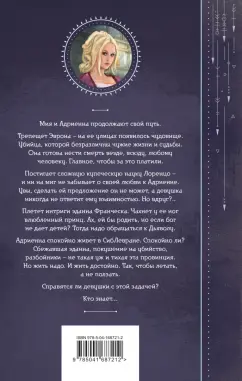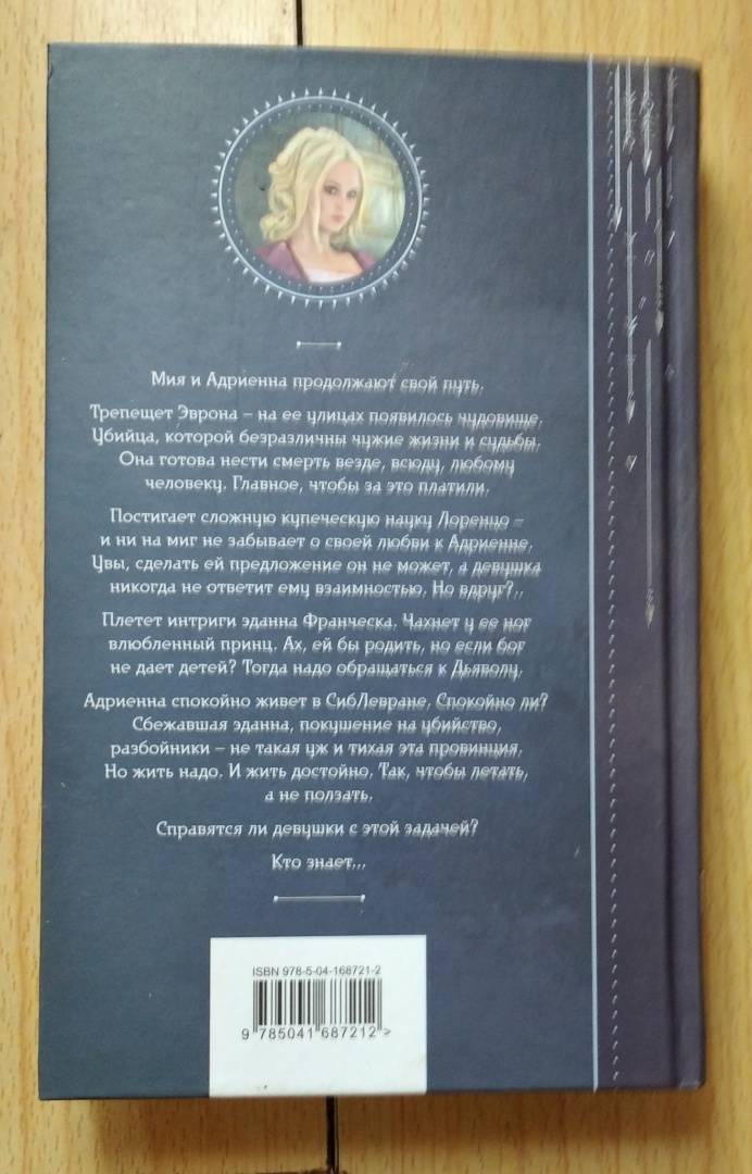 ОписаниеМия и Адриенна продолжают свой путь. Трепещет Эврона - на ее улицах появилось чудовище. Убийца, которой безразличны чужие жизни и судьбы. Она готова нести смерть везде, всюду, любому человеку. Главное, чтобы за это платили. Постигает сложную купеческую науку Лоренцо - и ни на миг не забывает о своей любви к Адриенне. Увы, сделать ей предложение он не может, а девушка никогда не ответит ему взаимностью. Но вдруг?.. Плетет интриги эданна Франческа. Чахнет у ее ног влюбленный принц. Ах, ей бы родить, но если бог не дает детей? Тогда надо обращаться к Дьяволу. Адриенна спокойно живет в СибЛевране. Спокойно ли? Сбежавшая эданна, покушение на убийство, разбойники - не такая уж и тихая эта провинция. Но жить - надо. И жить достойно. Так, чтобы летать, а не ползать. Справятся ли девушки с этой задачей? Кто знает...Мия и Адриенна продолжают свой путь. Трепещет Эврона - на ее улицах появилось чудовище. Убийца, которой безразличны чужие жизни и судьбы. Она готова нести смерть везде, всюду, любому человеку. Главное, чтобы за это платили. Постигает сложную купеческую науку Лоренцо - и ни на миг не забывает о своей любви к Адриенне. Увы, сделать ей предложение он не может, а девушка никогда не ответит ему взаимностью. Но вдруг?.. Плетет интриги эданна Франческа. Чахнет у ее ног влюбленный принц. Ах, ей бы родить, но если бог не дает детей? Тогда надо обращаться к Дьяволу. Адриенна спокойно живет в СибЛевране. Спокойно ли? Сбежавшая эданна, покушение на убийство, разбойники - не такая уж и тихая эта провинция. Но жить - надо. И жить достойно. Так, чтобы летать, а не ползать. Справятся ли девушки с этой задачей? Кто знает...