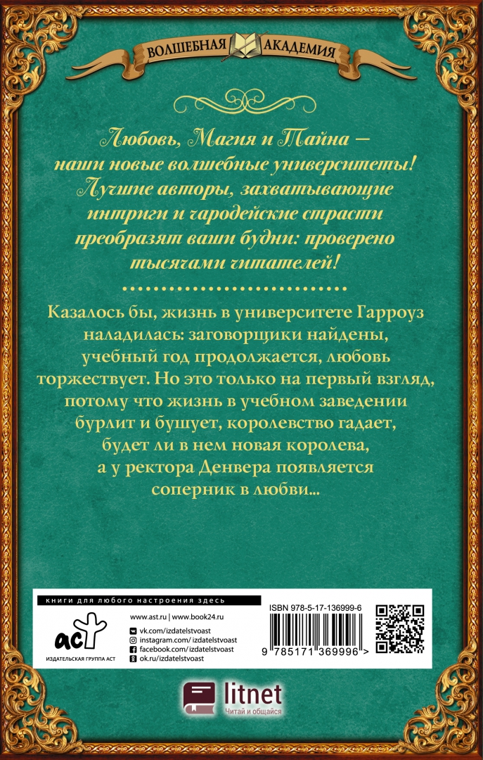ОписаниеКазалось бы, жизнь в университете Гарроуз наладилась: заговорщики найдены, учебный год продолжается, любовь торжествует. Но это только на первый взгляд, потому что жизнь в учебном заведении бурлит и бушует, королевство гадает, будет ли в нем новая королева, а у ректора Денвера появляется соперник в любви... Продолжение истории "Спасите ректора!".Долгожданное продолжение истории любви Рея и Аманды!