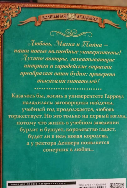 Объем, стр. 320 ISBN 978-5-17-136999-6 Автор Валентеева Ольга Александровна Серия Волшебная академия Минимальный возраст 16+ Год издания книги 2021 Тип обложки Твердый переплет Иллюстрации Без иллюстраций Вес, г 278 Размеры 207х135х23 мм - Отзывы