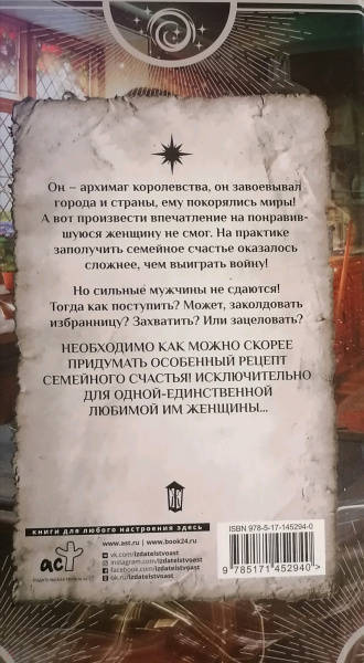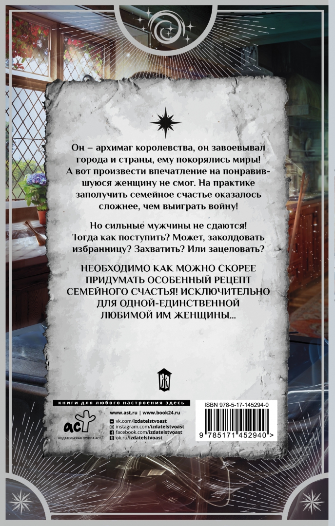 ОписаниеОн – архимаг королевства, он завоевывал города и страны, ему покорялись миры! А вот произвести впечатление на понравившуюся женщину не смог. На практике заполучить семейное счастье оказалось сложнее, чем выиграть войну!Но сильные мужчины не сдаются! Тогда как поступить? Может, заколдовать избранницу? Захватить? Или зацеловать? Необходимо как можно скорее придумать особенный рецепт семейного счастья! Исключительно для одной, единственной любимой им женщины…Он – архимаг королевства, он завоевывал города и страны, ему покорялись миры! А вот произвести впечатление на понравившуюся женщину не смог. На практике заполучить семейное счастье оказалось сложнее, чем выиграть войну!Но сильные мужчины не сдаются! Тогда как поступить? Может, заколдовать избранницу? Захватить? Или зацеловать? Необходимо как можно скорее придумать особенный рецепт семейного счастья! Исключительно для одной, единственной любимой им женщины…