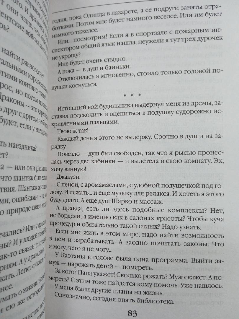 ОписаниеСтрашное потрясение ждет Академию Драконариев. Привыкли издеваться над безответной однокурсницей, а она вдруг поменялась. Да так, что страшно становится. Результат жестокой шутки привел к тому, что душа Каэтаны ушла, и в ее теле оказалась душа женщины иного мира. Комсомолки, спортсменки и фитнес-тренера. Зоя в себе сомневаться и терпеть унижения не будет. И займется она тем, что лучше всего умеет. Создаст свою спортивную секцию. Говорите, женской дружбы не бывает? Еще как бывает. Рецепт прост. Много спорта, много врагов вокруг — и драконы. Смешать, взболтать… драконы против и уже изволили скушать врагов? Тогда оставляем тренировки. А драконы — драконы сами останутся. Драконы цвета крови врагов.Страшное потрясение ждет Академию Драконариев. Привыкли издеваться над безответной однокурсницей, а она вдруг поменялась. Да так, что страшно становится. Результат жестокой шутки привел к тому, что душа Каэтаны ушла, и в ее теле оказалась душа женщины иного мира. Комсомолки, спортсменки и фитнес-тренера. Зоя в себе сомневаться и терпеть унижения не будет. И займется она тем, что лучше всего умеет. Создаст свою спортивную секцию. Говорите, женской дружбы не бывает? Еще как бывает. Рецепт прост. Много спорта, много врагов вокруг — и драконы. Смешать, взболтать… драконы против и уже изволили скушать врагов? Тогда оставляем тренировки. А драконы — драконы сами останутся. Драконы цвета крови врагов.