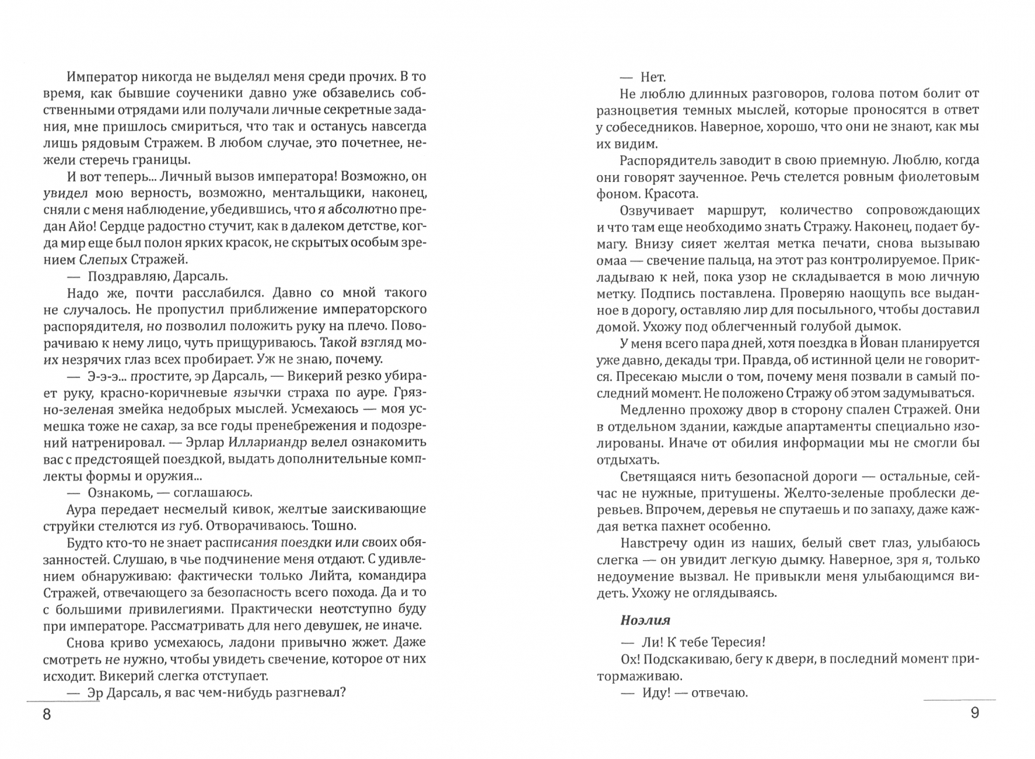 ОписаниеС детства на мне лежало клеймо. Сын изменника. С тех пор, как много лет назад отца обвинили в предательстве, большинство возможностей, открытых остальным, стали для меня недоступны. И лишь сильные способности позволили войти в личную гвардию Императора. Когда повелитель поручил самую важную миссию, охрану своей будущей жены, я возрадовался, что грехи отца, наконец, прощены. Мог ли я тогда предположить, что стану разменной монетой в играх высших? Что безнадёжно полюблю ту единственную, чья аура не раздражает моего изменённого зрения? И что именно мне предстоит сделать сложный выбор, разгадать страшную тайну мира Ай-Йован. Мне, Слепому Стражу скрытых земель.С детства на мне лежало клеймо. Сын изменника. С тех пор, как много лет назад отца обвинили в предательстве, большинство возможностей, открытых остальным, стали для меня недоступны. И лишь сильные способности позволили войти в личную гвардию Императора. Когда повелитель поручил самую важную миссию, охрану своей будущей жены, я возрадовался, что грехи отца, наконец, прощены. Мог ли я тогда предположить, что стану разменной монетой в играх высших? Что безнадёжно полюблю ту единственную, чья аура не раздражает моего изменённого зрения? И что именно мне предстоит сделать сложный выбор, разгадать страшную тайну мира Ай-Йован. Мне, Слепому Стражу скрытых земель.