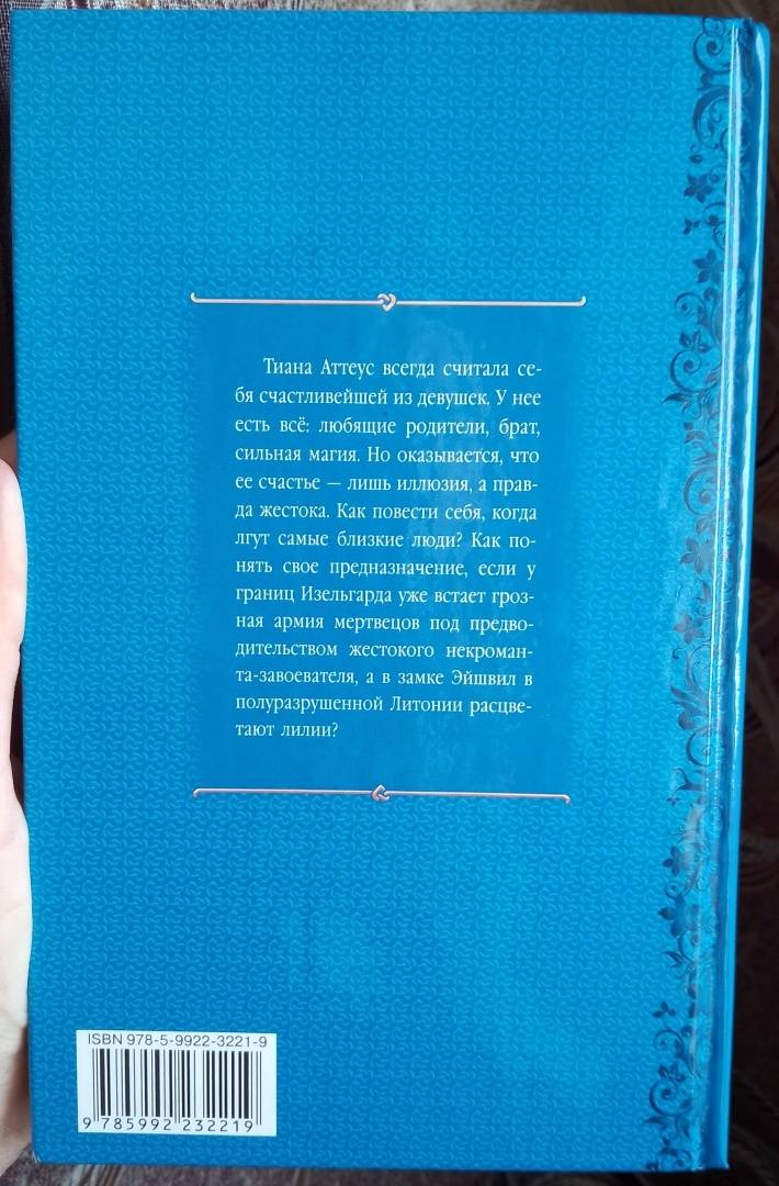 ОписаниеТиана Аттеус всегда считала себя счастливейшей из девушек. У нее есть всё: любящие родители, брат, сильная магия. Но оказывается, что ее счастье - лишь иллюзия, а правда жестока. Как повести себя, когда лгут самые близкие люди? Как понять свое предназначение, если у границ Изельгарда уже встает грозная армия мертвецов под предводительством жестокого некроманта-завоевателя, а в замке Эйшвил в полуразрушенной Литонии расцветают лилии?Тиана Аттеус всегда считала себя счастливейшей из девушек. У нее есть всё: любящие родители, брат, сильная магия. Но оказывается, что ее счастье - лишь иллюзия, а правда жестока. Как повести себя, когда лгут самые близкие люди? Как понять свое предназначение, если у границ Изельгарда уже встает грозная армия мертвецов под предводительством жестокого некроманта-завоевателя, а в замке Эйшвил в полуразрушенной Литонии расцветают лилии?