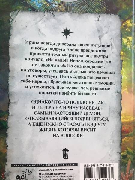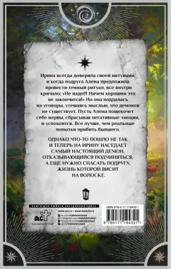 ОписаниеИрина всегда доверяла своей интуиции, и когда подруга Алена предложила провести темный ритуал, все внутри кричало: "Не надо!!! Ничем хорошим это не закончится!" Но она поддалась на уговоры, утешаясь мыслью, что демонов не существует. Пусть Алена пощекочет себе нервы, сбрасывая негативные эмоции, и успокоится. Все лучше, чем реальные попытки прибить бывшего.Однако что-то пошло не так, и теперь на Ирину наседает самый настоящий демон, отказывающийся подчиняться, а еще нужно спасать подругу, жизнь которой висит на волоске.Ирина всегда доверяла своей интуиции, и когда подруга Алена предложила провести темный ритуал, все внутри кричало: "Не надо!!! Ничем хорошим это не закончится!" Но она поддалась на уговоры, утешаясь мыслью, что демонов не существует. Пусть Алена пощекочет себе нервы, сбрасывая негативные эмоции, и успокоится. Все лучше, чем реальные попытки прибить бывшего.Однако что-то пошло не так, и теперь на Ирину наседает самый настоящий демон, отказывающийся подчиняться, а еще нужно спасать подругу, жизнь которой висит на волоске.