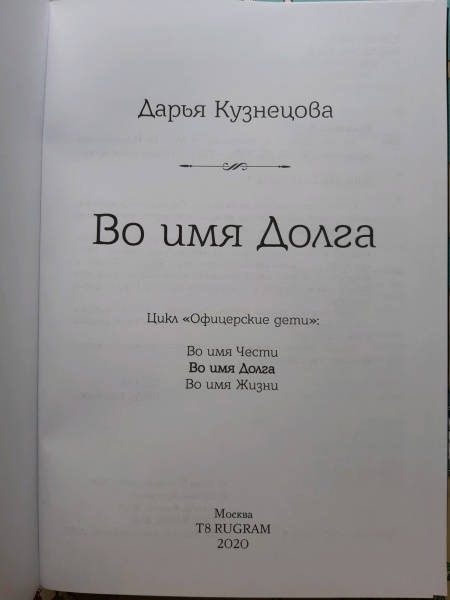 ---Дарья Кузнецова: Во имя ДолгаРусская классическая и современная литератураДетектив. Остросюжетная литератураЗарубежная художественная литератураРусская художественная литератураФэнтезиДраматургияПоэзияПриключенияФантастикаЭпос и фольклорКлассическая прозаАфоризмыИсторическая прозаДетективыБасниСентиментальная прозаОтечественный боевикСовременная прозаМолодежная литератураЗарубежная классическая и современная литература