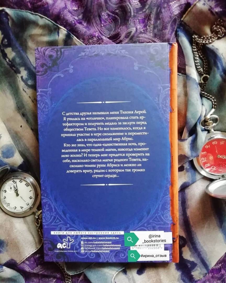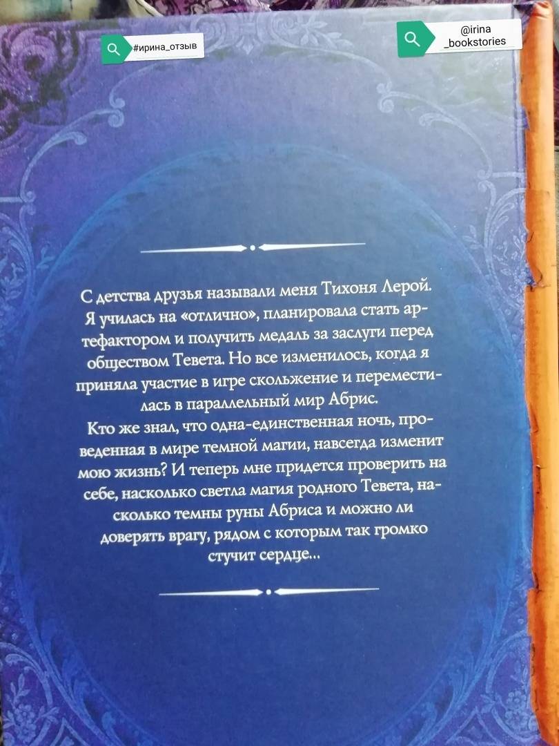 ОписаниеС детства друзья называли меня Тихоня Лерой. Я училась на "отлично", планировала стать артефактором и получить медаль за заслуги перед обществом Тевета. Но все изменилось, когда я приняла участие в игре скольжение и переместилась в параллельный мир Абрис.Кто же знал, что одна-единственная ночь, проведенная в мире темной магии, навсегда изменит мою жизнь? И теперь мне придется проверить на себе, насколько светла магия родного Тевета, насколько темны руны Абриса и можно ли доверять врагу, рядом с которым так громко стучит сердце…С детства друзья называли меня Тихоня Лерой. Я училась на "отлично", планировала стать артефактором и получить медаль за заслуги перед обществом Тевета. Но все изменилось, когда я приняла участие в игре скольжение и переместилась в параллельный мир Абрис.Кто же знал, что одна-единственная ночь, проведенная в мире темной магии, навсегда изменит мою жизнь? И теперь мне придется проверить на себе, насколько светла магия родного Тевета, насколько темны руны Абриса и можно ли доверять врагу, рядом с которым так громко стучит сердце…
