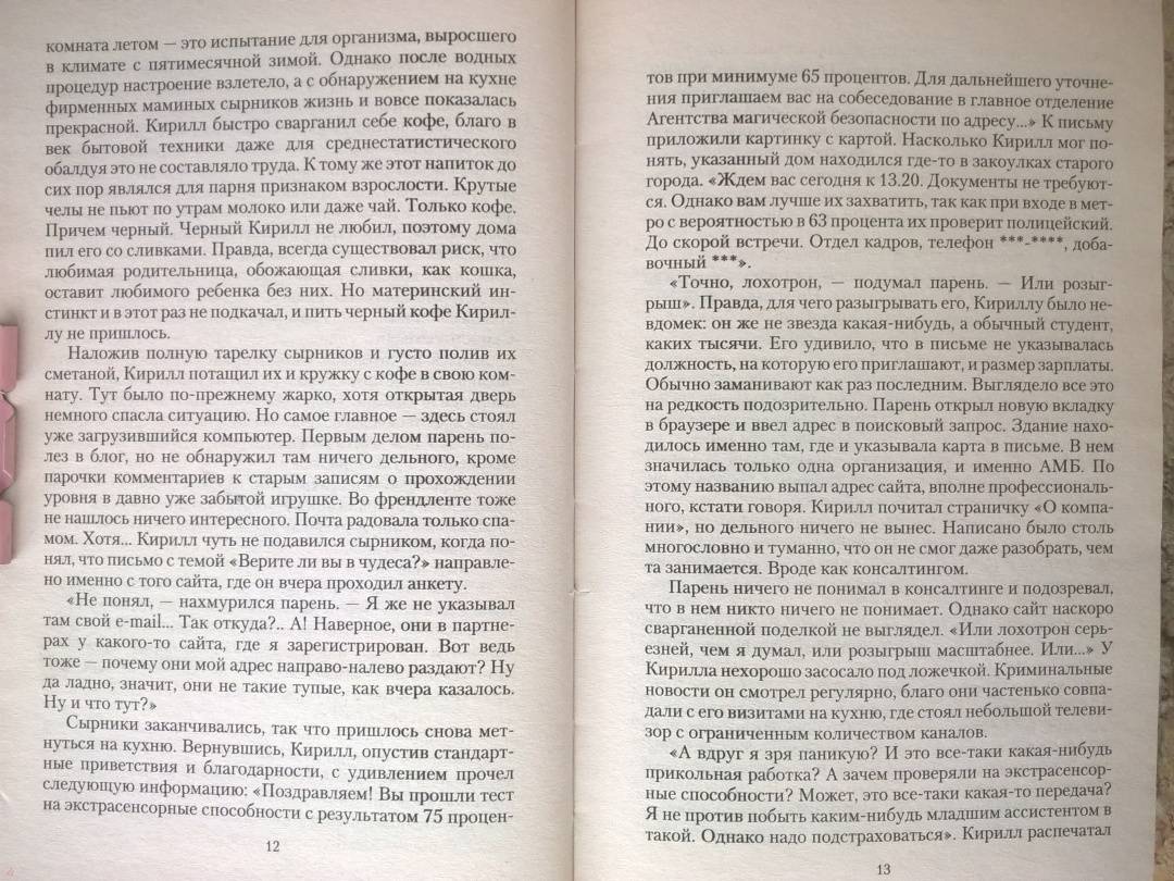 ОписаниеОднажды, копаясь в Интернете, Кирилл наткнулся на тест, предлагающий проверить свои экстрасенсорные способности. Пройдя его от скуки, юноша очень удивился полученному в результате приглашению на собеседование в Агентство магической безопасности. Но на этом странности не закончились: Кирилла не только взяли на работу, но и тут же отправили на задание, а в напарники дали ведьму. И события закрутились с такой скоростью, что уже просто не осталось времени на подозрения в глобальном розыгрыше.Однажды, копаясь в Интернете, Кирилл наткнулся на тест, предлагающий проверить свои экстрасенсорные способности. Пройдя его от скуки, юноша очень удивился полученному в результате приглашению на собеседование в Агентство магической безопасности. Но на этом странности не закончились: Кирилла не только взяли на работу, но и тут же отправили на задание, а в напарники дали ведьму. И события закрутились с такой скоростью, что уже просто не осталось времени на подозрения в глобальном розыгрыше.