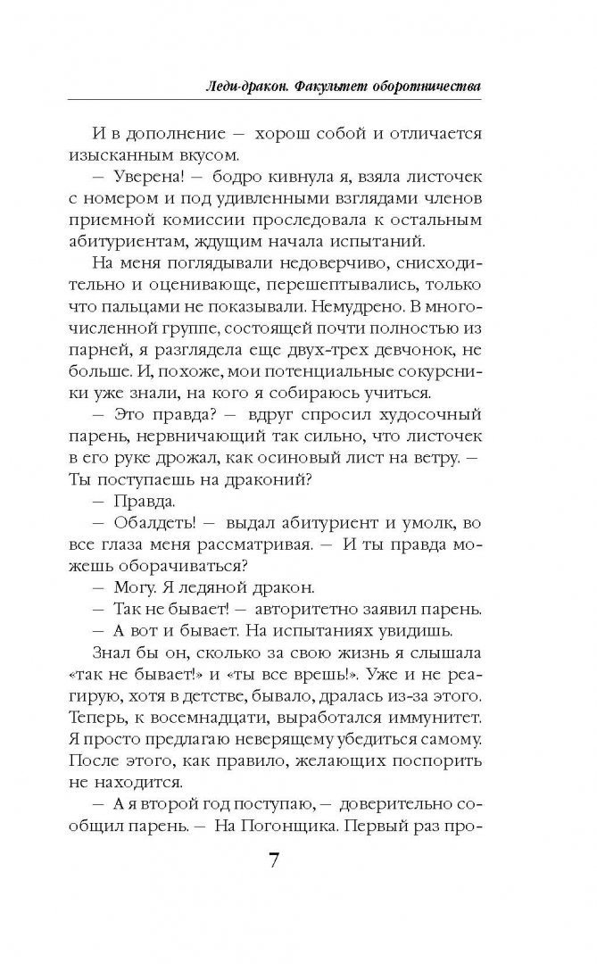 ОписаниеЕсть две истины, в которых сомневаться нельзя. Первая - девочки не бывают драконами. Вторая - девочки не учатся в Драконьей Академии. Вил Инеевая, в своей второй ипостаси ледяной дракон, на истины наплевала, на факультет оборотничества поступила, стала лучшей и... получила в награду кучу неприятностей. Какую магию пробудил случайный поцелуй? Как теперь избавиться от навязчивого и нахального однокурсника? Как спастись от прошлого, которое неминуемо настигает? И главное, как узнать - кто он, Черный Дракон, которого по определению не может быть, но который уже не раз спасал жизнь Вил.Есть две истины, в которых сомневаться нельзя. Первая - девочки не бывают драконами. Вторая - девочки не учатся в Драконьей Академии. Вил Инеевая, в своей второй ипостаси ледяной дракон, на истины наплевала, на факультет оборотничества поступила, стала лучшей и... получила в награду кучу неприятностей. Какую магию пробудил случайный поцелуй? Как теперь избавиться от навязчивого и нахального однокурсника? Как спастись от прошлого, которое неминуемо настигает? И главное, как узнать - кто он, Черный Дракон, которого по определению не может быть, но который уже не раз спасал жизнь Вил.