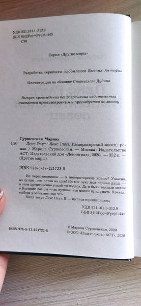 Объем, стр. 352 ISBN 978-5-17-121723-5 Автор Суржевская Марина Серия Другие миры Минимальный возраст 16+ Год издания книги 2020 Тип обложки Твердый переплет Иллюстрации Без иллюстраций Вес, г 274г Размеры 207х135х26 мм - Отзывы